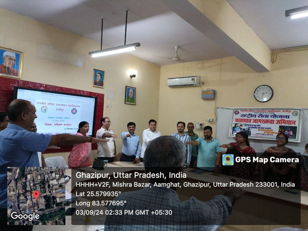 इसके साथ ही कार चालकों को बताया कि सीट बेल्ट लगाकर ही कार आदि वाहनों का संचालन करें। डॉ गजनफर सईद, डा रामनाथ केसरवानी, डा ओम शिवानी के नेतृत्व में यातायात जागरूकता रैली महुआ बाग मिश्र बाजार होते हुए महाविद्यालय पहुंची। अपराह्न 2 बजे यातायात जागरूकता के संदर्भ में शिक्षक प्रशिक्षण कार्यक्रम आयोजित किया गया जिसमें जनपद नोडल अधिकारी डा अमित यादव ने सुरक्षित यातायात के विविध पहलुओं और यातायात प्रतीक चिह्न से सभी शिक्षक को परीचित कराया। प्राचार्य प्रो अनिता कुमारी ने समस्त शिक्षकों को सुरक्षित यातायात हेतु शपथ दिलाई। इस अवसर पर समस्त शिक्षक एवं कर्मचारी उपस्थित रहे।