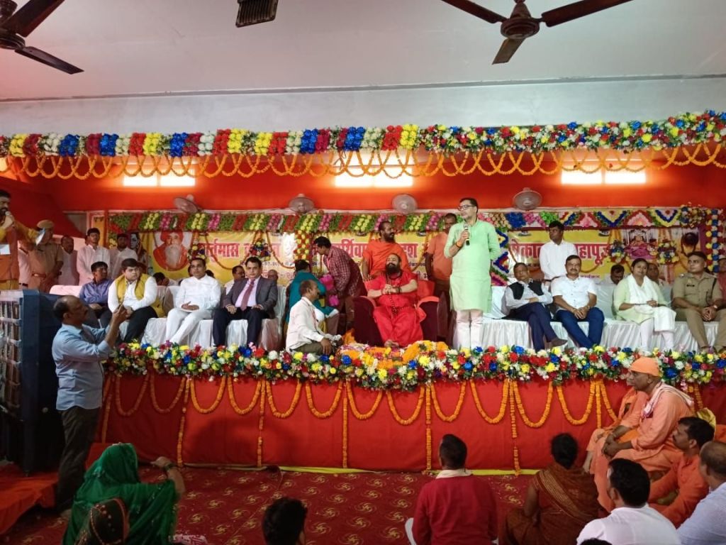गाजीपुर। सिद्धपीठ पर स्वामी भवानीनंदन यति जी महाराज का आविर्भाव दिवस मनाया जा रहा था। इस अवसर पर तमाम गणमान्य सिद्धपीठ पर पहुंचे थे। जहां डीआईजी वाराणसी डॉ ओमप्रकाश सिंह व जिलाधिकारी आर्यका अखौरी के पुलिस अधीक्षक डॉ ईरज भी पहुंचे। जहां पता चला कि आज ही गाजीपुर के पुलिस अधीक्षक का भी जन्मदिवस था। तत्काल उसी मंच पर महामंडलेश्वर जी के निर्देश पर वैदिक विद्वानों द्वारा मंत्र चारण कर पुलिस अधीक्षक डॉ ई राज का जन्मदिवस मनाया गया।