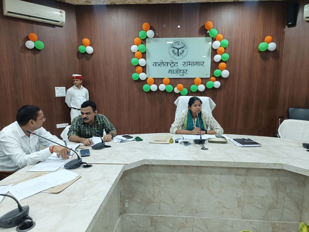 गाजीपुर।जिलाधिकारी आर्यका अखौरी की अध्यक्षता में कलेक्ट्रट सभागार मे नगर पालिका/नगर पंचायतो मे कराए जा रहे विभिन्न विकास कार्याे की समीक्षा बैठक हुई।