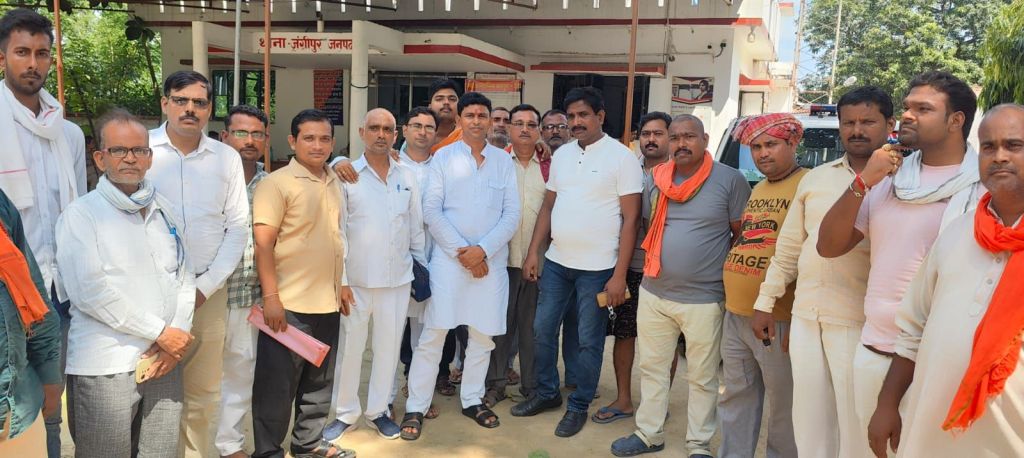 शुक्रवार के दिन सोनार समाज के लोगो के साथ पीड़िता के पिता ने पुलिस अधीक्षक को चौकी इंचार्ज के खिलाफ शिकायती पत्रक सौपा। पत्र में उन्होंने लिखा कि 15 सितंबर के दिन नगर के वार्ड नंबर चार गुरुसेवक निवासी कल्लू कुरैशी पुत्र गुड्डू कुरैशी मेरी पुत्री को बहला फुसलाकर भगा ले गया। पीड़िता के परिजनों द्वारा जंगीपुर थाने में एफआईआर दर्ज कराया गया। एफआईआर दर्ज कराने के तीन दिन बाद जौनपुर जिले से लड़का और लड़की को स्थानीय पुलिस ने गिरफ्तार किया। उसके बाद कृषि उत्पादन मंडी समिति चौकी इंचार्ज शिवमनी त्रिपाठी द्वारा मेरी बेटी सहित मेरे परिवार को बयान बदलने सहित पीड़िता से यह कहा गया कि तुम बयान में यह बोलना की मैं किसी के साथ भगी नहीं थी ब्लकि घर से गुस्से से चली गई थी।