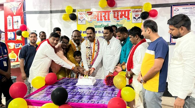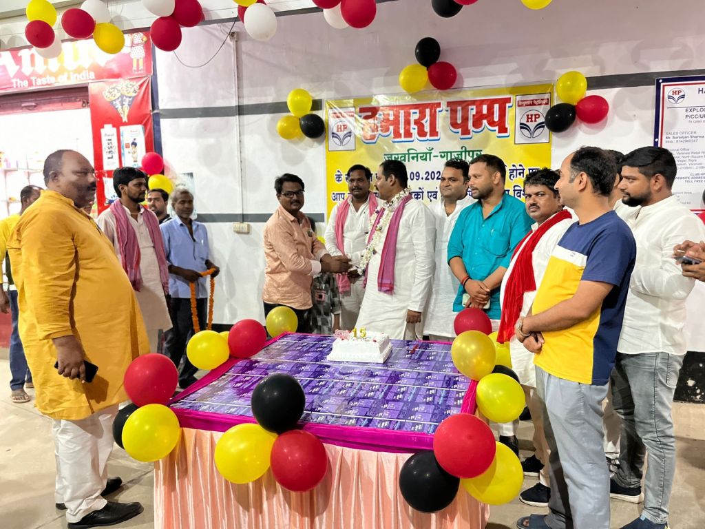 हमारा पंप जखनिया का 15 वां स्थापना दिवस स्नातक एमएलसी ने केक काट कर मनाया