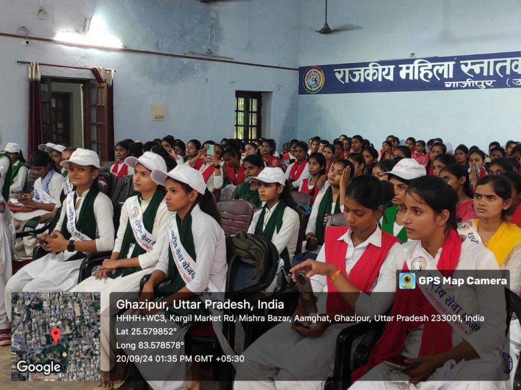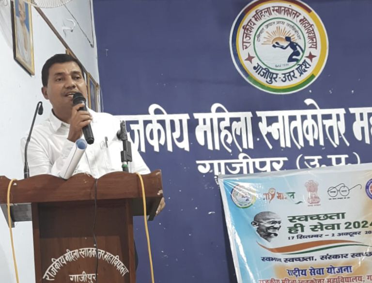 गाजीपुर। शुक्रवार को राष्ट्रीय सेवा योजना राजकीय महिला स्नातकोत्तर महाविद्यालय द्वारा “स्वच्छता ही सेवा” अभियान के अंतर्गत एक वृहद सांस्कृतिक कार्यक्रम का आयोजन किया गया। कार्यक्रम की शुरुआत मां सरस्वती के चरणों में माल्यार्पण से हुई । कार्यक्रम के मुख्य अतिथि जिला समाज कल्याण अधिकारी राम नगीना यादव, विशिष्ट अतिथि पारसनाथ यादव, संजय सोनी एवं गिरिजा शंकर सरोज का विद्यालय द्वारा स्वागत किया गया।कार्यक्रम की अध्यक्षता राष्ट्रीय सेवा योजना के जनपद नोडल अधिकारी डॉक्टर अमित यादव ने करते हुए आए हुए समस्त अतिथि का स्वागत किया। डॉ ओम शिवानी एवं डा रामनाथ केसरवानी ने संयुक्त रूप से कार्यक्रम का संचालन किया।स्वच्छता के प्रति जागरूकता फैलाने के क्रम में एन.एस.एस.की छात्रा सोनाली यादव के द्वारा एक खूबसूरत नृत्य प्रस्तुत किया गया