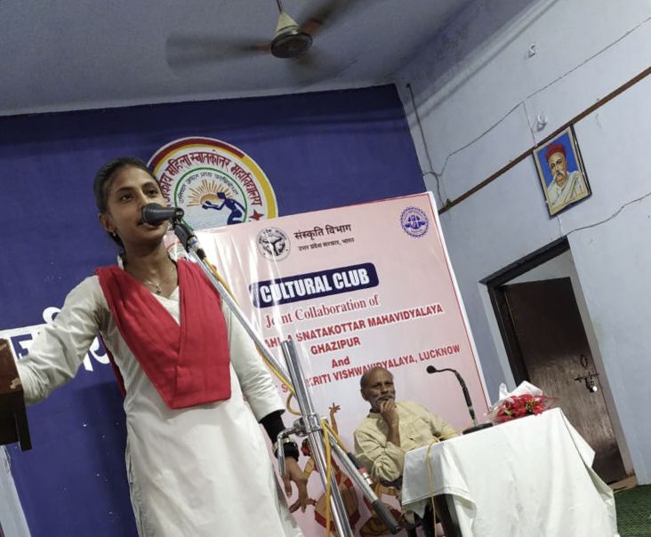 यही वसुधैव कुटुंबकम् है। जहां सभी अपने हैं। इस अवसर पर बी ए प्रथम वर्ष की छात्रा खुशबू ने ‘जागा हिंद ललनवा’ बिरहा गीत का पूरी भाव भंगिमा के साथ गायन किया। जिस पर छात्राओं ने खूब तालियां बजाई। पूनम यादव ने अपने घर में नित्य गाए जाने वाले भजन का पाठ किया ‘माई बाबू से बढ़ी के ई दुनिया में का बा/उन्हीं से रोशन दुनिया जहान बा’ आफ़रीन ने मां सरस्वती की बंदना गीत प्रस्तुत किया। इस अवसर पर कल्चरल क्लब प्रभारी डा निरंजन कुमार यादव ने कहा कि बिना अपनी संस्कृति को जाने समझे, उस दिशा में कोई ठोस काम नहीं किया जा सकता। जब तक हम उसके महत्व को नहीं समझेंगे तब तक उसके प्रति हमारा लगाव नहीं होगा। प्राचार्य प्रो अनीता कुमारी ने कहा पाश्चात्य संस्कृति से मुक्ति के लिए लोक संस्कृति का सरंक्षण आवाश्यक है। इस अवसर पर डा विकास सिंह, डा अमित यादव, सहित कल्चरल क्लब के सभी सदस्य उपस्थित रहे।