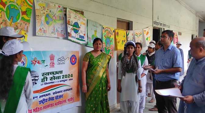गाजीपुर। सोमवार को राष्ट्रीय सेवा योजना, राजकीय महिला स्नातकोत्तर महाविद्यालय द्वारा “स्वच्छता ही सेवा” अभियान के अंतर्गत पोस्टर प्रतियोगिता का आयोजन किया गया जिसमें स्वयंसेवी छात्राओं ने बढ़ चढ़कर हिस्सा लिया । छात्राओं ने पोस्टर के माध्यम से अपने आसपास के वातावरण को स्वच्छ रखने का संदेश दिया । महाविद्यालय की प्राचार्य एवं संरक्षिका प्रो. डॉ. अनिता कुमारी ने छात्राओं द्वारा बनाई गए पोस्टर व उसके माध्यम से लोगों को स्वच्छता के प्रति जागरूक करने के प्रयासों की सराहना की । प्रतियोगिता में प्रतीक्षा राय प्रथम, श्रेया मौर्य द्वितीय, एवं शालू व सौम्या ने संयुक्त रूप से तृतीय स्थान प्राप्त किया ।