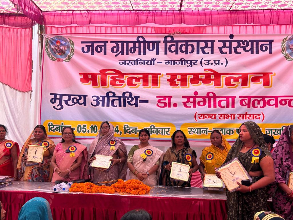 गाज़ीपुर।जखनिया ब्लॉक में जन ग्रामीण विकास संस्थान द्वारा आयोजित महिलाओं की पहचान, सम्मान एवं अधिकार महिला सम्मेलन कार्यक्रम में मुख्य अतिथि राज्यसभा सांसद डा.संगीता बलवंत ने कार्यक्रम का शुभारंभ किया ।