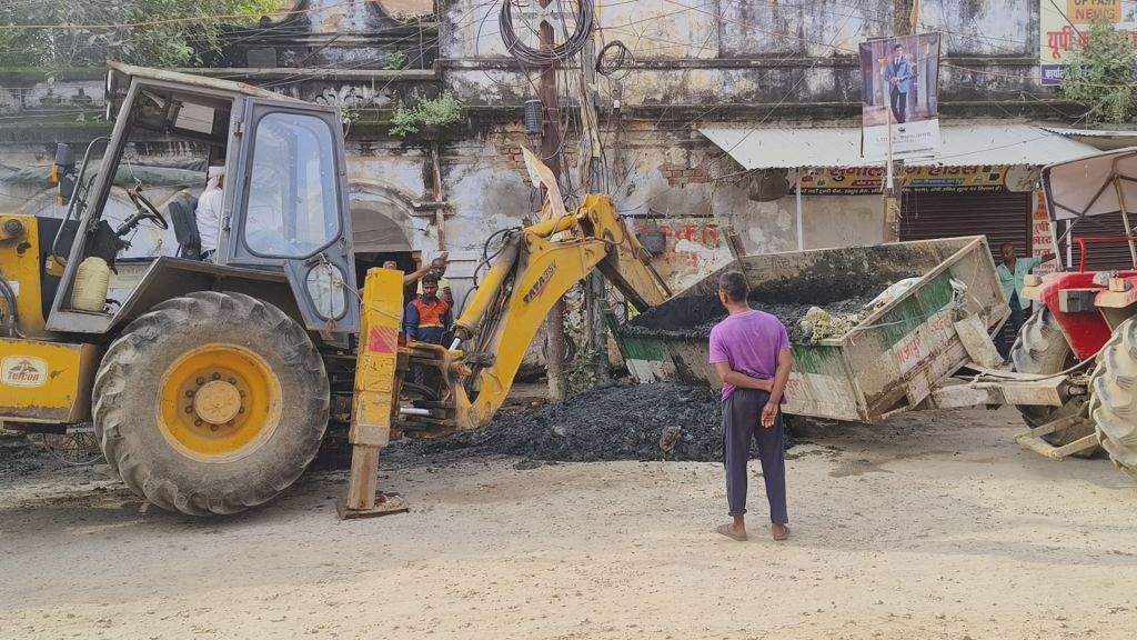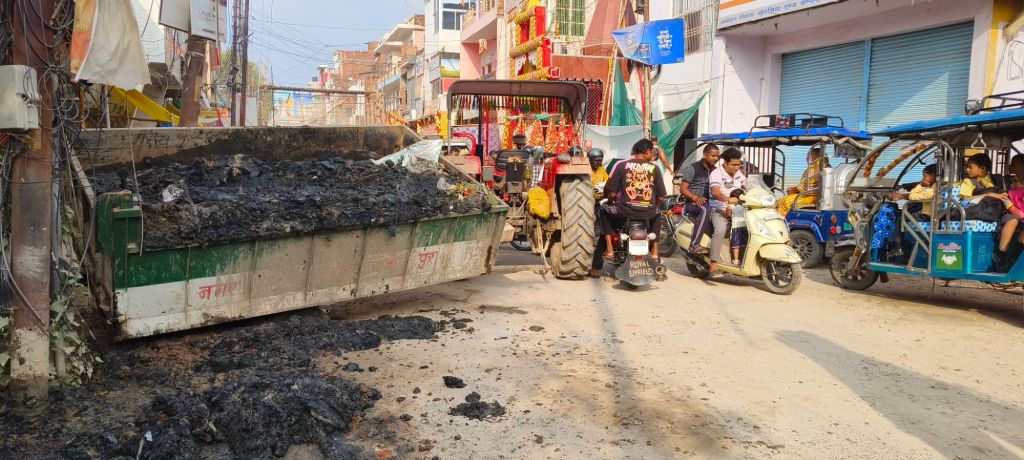 लेकिन भरे गए सड़क के गड्ढों का पोल खुल गया। बता दे कि जैसे ही नगर पालिका की ट्रैक्टर ट्रॉली मलबे को उठाने के लिए मिश्रा बाजार स्थित काली मां के मंदिर के पास आई। वैसे ही ट्रैक्टर ट्रॉली भरे गए गड्ढों में फस गया। इसके बाद करीब 1 घंटे तक नगर के मिश्रा बाजार क्षेत्र में जाम लग गया। काफ़ी मशक्कत के बाद जेसीबी ने ट्रैक्टर ट्रॉली को निकाला। इस दौरान एंबुलेंस सहित अन्य वाहनों के आवागमन हेतु भारी दिक्कतों का सामना करना पड़ा। ट्रैक्टर ट्रॉली के गड्ढे में फंसते ही सड़कों के गड्ढा मुक्ति का पोल खुल गया। जिला प्रशासन मुख्यमंत्री के गड्ढा मुक्ति के आदेशों का सही से पालन करने में असमर्थ दिख रही है।