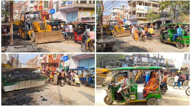 लेकिन भरे गए सड़क के गड्ढों का पोल खुल गया। बता दे कि जैसे ही नगर पालिका की ट्रैक्टर ट्रॉली मलबे को उठाने के लिए मिश्रा बाजार स्थित काली मां के मंदिर के पास आई। वैसे ही ट्रैक्टर ट्रॉली भरे गए गड्ढों में फस गया। इसके बाद करीब 1 घंटे तक नगर के मिश्रा बाजार क्षेत्र में जाम लग गया। काफ़ी मशक्कत के बाद जेसीबी ने ट्रैक्टर ट्रॉली को निकाला। इस दौरान एंबुलेंस सहित अन्य वाहनों के आवागमन हेतु भारी दिक्कतों का सामना करना पड़ा। ट्रैक्टर ट्रॉली के गड्ढे में फंसते ही सड़कों के गड्ढा मुक्ति का पोल खुल गया। जिला प्रशासन मुख्यमंत्री के गड्ढा मुक्ति के आदेशों का सही से पालन करने में असमर्थ दिख रही है।