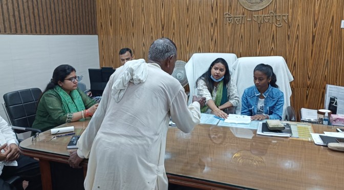 गाजीपुर। उत्तर प्रदेश सरकार द्वारा निर्गत कार्यक्रम मिशन शक्ति विशेष अभियान फेज -05 के अंतर्गत अंतरराष्ट्रीय बालिका दिवस समारोह के उपलक्ष्य में 03 अक्टूबर से 11 अक्टूबर,2024 तक चलने वाले कार्यक्रम की श्रृंखला के अंतर्गत सोमवार को ‘‘एक दिन की जिलाधिकारी‘‘ थीम के तहत जिलाधिकारी कार्यालय में जनपद की हाईस्कूल की मेधावी छात्रा प्रियंका कुशवाहा पुत्री शिवप्रसाद कुशवाहा को एक दिन की सांकेतिक ‘‘जिलाधिकारी‘‘ बनाया गया। सांकेतिक जिलाधिकारी ने जिलाधिकारी के रुप में जनता दर्शन के समय जनता की समस्या को सुनी।