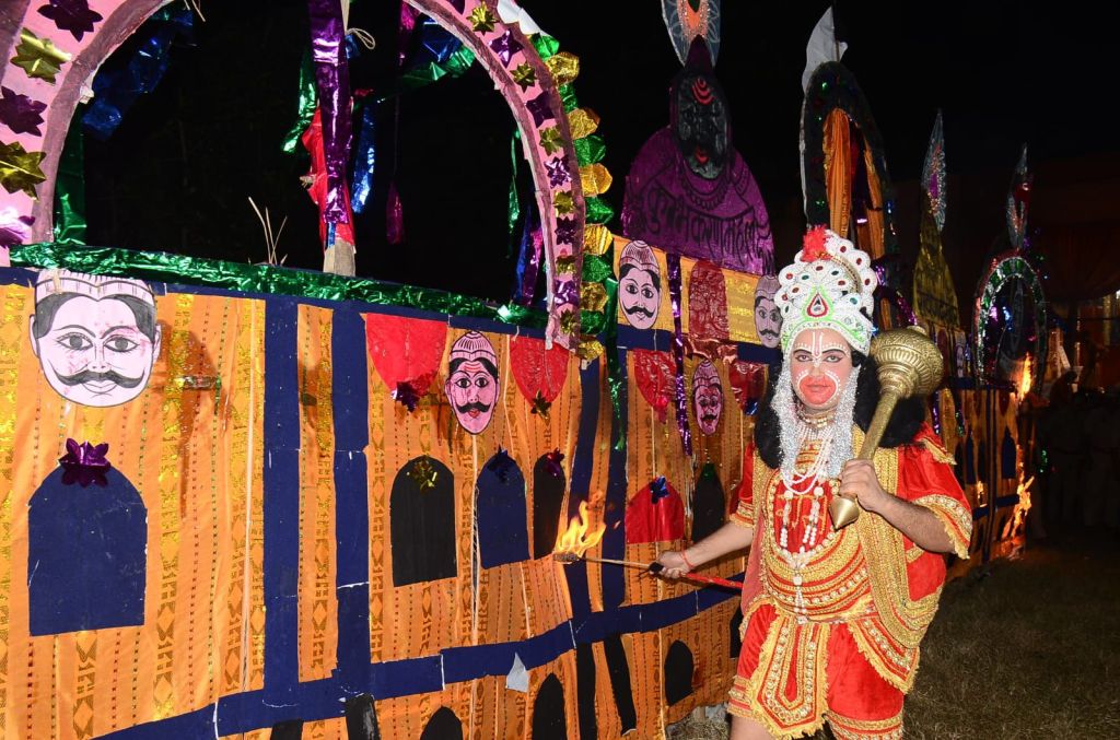 मेघनाथ हनुमान जी को लेकर रावण के दरबार ले जाता है। रावण ने अपने दूतों के द्वारा हनुमान जी बंधन में देखा और अपने दूतों को आदेश देकर हनुमान जी के पूंछ में आग लगा देने का आदेश देता है रावण के आजा अनुसार दूतों ने हनुमान जी की पूछ में आग लगा देते हैं। आग लगते ही हनुमान जी आकाश मार्ग से उड़ते हुए पूरे लंका नगरी को जला दिया। इस मौके पर कमेटी के मंत्री ओमप्रकाश तिवारी, उप मंत्री लवकुमार त्रिवेदी, मेला प्रबंधक मनोज कुमार तिवारी, मेला उप प्रबंधक मयंक तिवारी, कोषाध्यक्ष बाबू रोहित अग्रवाल, कृष्णाशं, रोहित पटेल, आदि रहे।