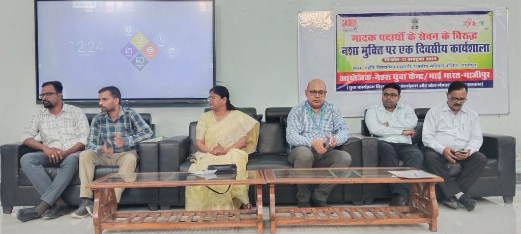 ग़ाज़ीपुर। नेहरू युवा केंद्र व माय भारत के अंतर्गत मादक पदार्थों के सेवन के विरुद्ध नशा मुक्ति पर एक दिवसीय कार्यक्रम का शुभारंभ गुरूवार को महर्षि विश्वामित्र स्वशासी राजकीय मेडिकल कॉलेज के प्रांगण में नगर पालिका अध्यक्ष सरिता अग्रवाल एवं अन्य अतिथियों ने दीप प्रज्वलित कर किया। सरिता अग्रवाल ने कहा कि नशा आज देश की ज्वलंत समस्या है। यह समस्या युवा पीढ़ी को लगातार अपने आगोश में ले रही है। बच्चे अपने माता-पिता से सीखते हैं। माता-पिता को भी अपनी जिम्मेदारियां को समझना होगा। उन्हें स्वयं आगे आकर इस बुराई को दूर करने में सहायक सिद्ध होना होगा। माय भारत के युवाओं द्वारा जिला अस्पताल में चले शैक्षिक प्रशिक्षण कार्यक्रम का समापन भी किया। उन्होंने कहा कि स्वस्थ होना अपने आप में अमूल्य धन है। स्वच्छता भी बहुत आवश्यक है।