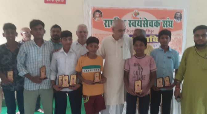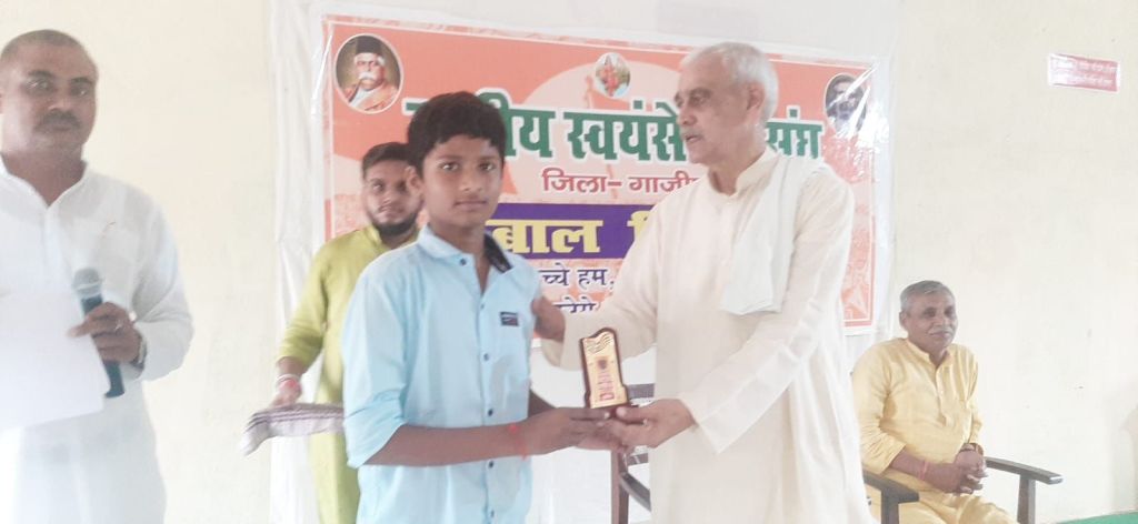 गाजीपुर। बालको के विकास की दृष्टि से चलाए जाने वाले एक दिवसीय बाल शिविर का आयोजन 20 अक्टुबर को राष्ट्रीय स्वयंसेवक संघ के तत्वाधान में माधव सरस्वती विघालय प्रकाशनगर में किया गया। इस बाल शिविर में का 19 अक्टुबर सांय 3 बजे शुभारम्भ किया गया जो 20 अक्टुबर को सांय 4 बजे विभाग संघचालक सच्चिदानन्द के उदबोधन व पुरस्कार वितरण के बाद सम्पन्न हुआ। इस बाल शिविर में जनपद के सभी खण्डो से 10 वर्ष से उपर बाल व तरूण ने प्रतिभाग किया। शिविर के माध्यम से बच्चो में नये नये उपक्रम सिखाकर उनके में राष्ट्रीय भावना का विकास के साथ साथ पर्यावरण संरक्षण, जल प्रदूषण, भूमि प्रदूषण, वायू प्रदूषण जैसे विभिन्न विषयो पर चित्रकला व निबन्ध प्रतियोगिता का आयोजन किया गयां। प्रतियोगिता के पुरस्कार का वितरण किया गया। इस अवसर पर सघसंचालक सच्चिदानन्द ने बताया कि हमारे बाल स्वयंसेवक एक कोरा कागज होते है इनमे नवचेतना के साथ साथ राष्ट्र चेतना का प्रवाह होता है। राष्ट्र प्रेम व राष्ट्रीय भावना से प्रेरित होकर बच्चो कां विकास सही अर्थो में होना चाहिए, बच्चो के विकास पर ही हमारे देश का भविष्य है और इन्ही बच्चो के हाथो मे ही हमारे देश का विकास सम्भव है। जो आगे चल कर हमारे मजबूत व सुदृढ भारत का निर्माण करेगा। आज हम 100 वें वर्ष में प्रवेश कर चुके है हमे मजबूत व शसक्त भारत का निर्माण करना है जिसके लिए इन बच्चो को मजबूत होना होगां, जिससे आने वाला देश का भविष्य मजबूत हो सके, बाल शिविर में कुल 130 बाल प्रतिभाग किये । इस अवसर पर जिला संघचालक जयप्रकाश, सह विभाग प्रचारक दीपक, जिला प्रचारक सूरज, जिला कार्यवाह अमित, सह कार्यवाही विपिन, विनोद, चन्द्र कुमार, अवधेश, बृजकिशन, अशोक, नगर संघचालक दीनदयाल, नगर कार्यवाह अंजनी, सह नगर कार्यवाही अभिषेक, जिला शासकीय अधिवक्ता कृपाशंकर राय, अधिवक्ता विश्वनाथ पाण्डेय, संजय, दिनेश, रितेश, रोहित, श्यामजी, रंजन आदि उपस्थित रहे।