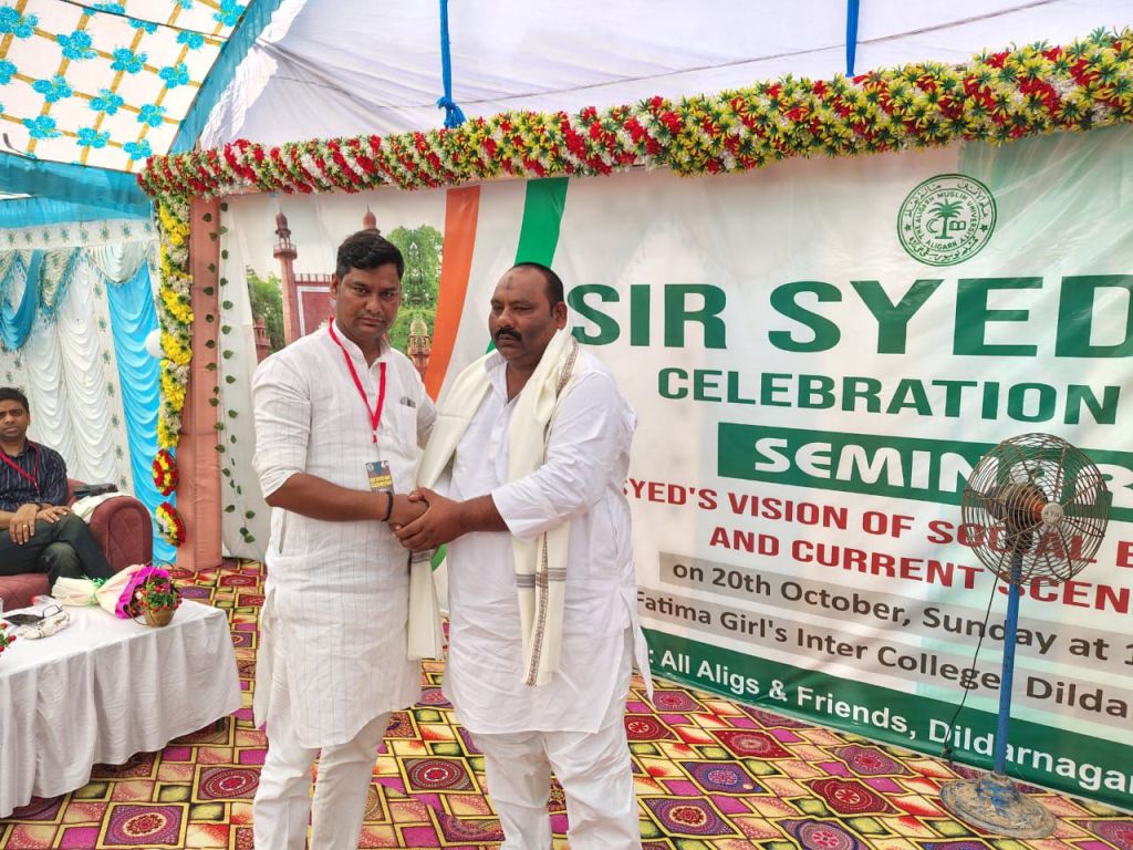 विशिष्ट अथिति बनारस हिंदू यूनिवर्सिटी इतिहास विभाग के प्रोफेसर ताबीर कलाम ने लोगो को संबोधित करते हुए कहा कि शिक्षा को आगे बढ़ाने के लिए समाज में लोगो को पुरुषों के अलावा महिलाओं को शिक्षित करना होगा तभी मजबूत सामाजिक संरचना बनेगी।शिक्षा की अलख जगाने के लिए ही जैसे मदन मोहन मालवीय ने बनारस हिंदू विश्व विद्यालय की स्थापना की उसी प्रकार कौम को शिक्षित करने के लिए अलीगढ़ मे सर सैयद ने अलीगढ़ में विश्व विद्यालय कायम करके समाज और शिक्षा को एक कड़ी में पिरोया है। उन्होंने ये नहीं कहा कि सिर्फ मुसलमानों के लिए ही विश्व विद्यालय बना है बल्कि हर कौम के लोग शिक्षित हो सके।मदन मोहन मालवीय ने बनारस विश्व विद्यालय की स्थापना की तो सिर्फ हिंदुओं के लिए ही नहीं सारे लोगों को शिक्षित करने के लिए विश्व विद्यालय की स्थापना की। ज़मानीया विधायक ओम प्रकाश सिंह के प्रतिनिधि मन्नू सिंह ने कहा कि मैं इस तौकीर खान जिला अल्पसंखयक अध्यक्ष के पूरे टीम को दिल से धन्यवाद और मुबारकबाद दिए कि जिस शख्शियत के लिए आयोजन किया गया है जो हमारे बीच नहीं है जो पूरे हिंदुस्तान में शिक्षा का बुनियाद रख कर गए और शिक्षा के आधुनिकरण का लोगों में विचारधारा पैदा किया और संघर्ष व अभाव में रह कर अलीगढ़ मुस्लिम यूनिवर्सिटी बनाई और इस कॉलेज के लोग जगह जगह हिंदुस्तान में मिलेंगे।आज वो हम लोगों के बीच में नहीं हैं ।जो उनकी सोच थी जो विचारधारा थी उसी को आगे बढ़ाने के लिए उनके जन्म दिन पर आज आयोजन हुआ जिससे हम लोग बहुत खुश हैं ऐसे महापुरुषो को याद करके।