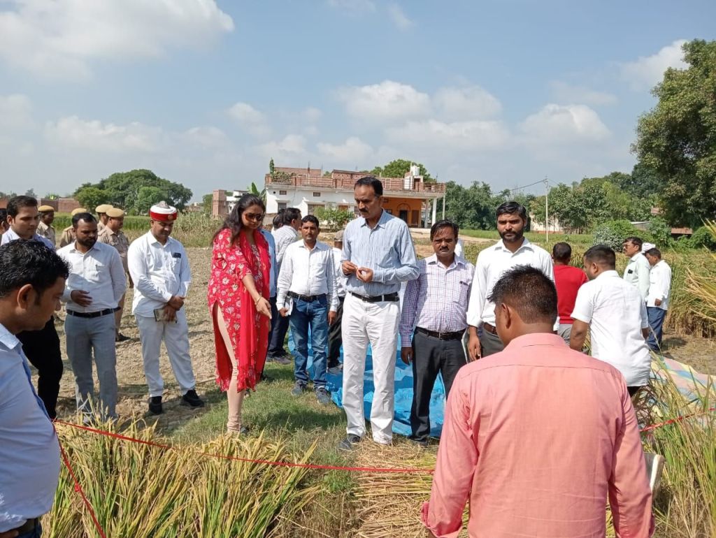 इसी सिलसिले में शनिवार को जिलाधिकारी आर्यका अखौरी की उपस्थिति मे ग्राम हेतिमपुर तहसील सदर में संगीता यादव के खेत मे धान की क्राप कटिंग कराई गई। इस दौरान 43.33 वर्ग मीटर या .0043 हेक्टेयर खेत में क्राप कटिंग मौके पर कराई गई। जिसमें 33.07 किग्रा उपज तौलाई के दौरान प्राप्त हुई।