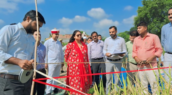 इसी सिलसिले में शनिवार को जिलाधिकारी आर्यका अखौरी की उपस्थिति मे ग्राम हेतिमपुर तहसील सदर में संगीता यादव के खेत मे धान की क्राप कटिंग कराई गई। इस दौरान 43.33 वर्ग मीटर या .0043 हेक्टेयर खेत में क्राप कटिंग मौके पर कराई गई। जिसमें 33.07 किग्रा उपज तौलाई के दौरान प्राप्त हुई।