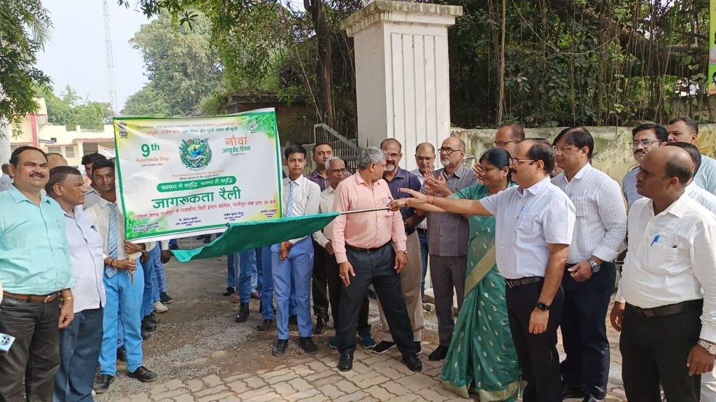 गाजीपुर। नवम् आयुर्वेद दिवस के उपलक्ष्य में वैश्विक स्वास्थ्य के लिए आयुर्वेद नवाचार नवम् आयुर्वेद दिवस के उपलक्ष्य में वैश्विक स्वास्थ्य के लिए आयुर्वेद कार्यक्रम के अन्तर्गत मंगलवार को नगर पालिका अध्यक्ष सरिता अग्रवाल एवं मुख्य विकास अधिकारी संतोष कुमार वैश्य द्वारा आयुर्वेद जागरूकता का शुभारंभ रायफल क्लब से राजकीय सिटी इण्टर कालेज के लिए कराया गया। जिसमें प्रधानाचार्य, राजकीय होम्योपैथिक मेडिकल कालेज डा. राजेन्द्र राजपूत, क्षेत्रीय आयुर्वेदिक एवं यूनानी अधिकारी डा. जयन्त कुमार, जिला होम्योपैेथ अधिकारी, डा. अजय प्रकाश सिंह, जिला सूचना अधिकारी राकेश कुमार, प्रधानाचार्य राजकीय सिटी इण्टर कालेज एवं जिला कार्यक्रम प्रबन्धक (आयुष विभाग) अखिलेश गुप्ता इत्यादि अधिकारीगण उपस्थित रहे। मुख्य कार्यक्रम राजकीय सिटी इण्टर कालेज के सभागार में सम्पन्न कराया गया। जिसकी थीम वैश्विक स्वास्थ्य के लिए आयुर्वेद की उपयोगिता के विषय पर विद्यार्थियों के द्वारा भाषण प्रतियोगिता, स्लोगन, पोस्टर, प्रश्ननोत्तरी, निबन्ध लेखन, वाद-विवाद प्रतियोगिता आदि का आयोजन कराया गया।29 अक्टूबर को, जनपद के साथ ही आयुष विधा (आयुर्वेद, यूनानी एवं होम्योपैथ) गाजीपुर क्षेत्रान्तर्गत संचालित समस्त आयुष चिकित्सालयों पर शासन द्वारा निर्दिष्ट कार्यक्रमों के साथ-साथ नवम् आयुर्वेद दिवस हर्षाेल्लास से मनाया गया।