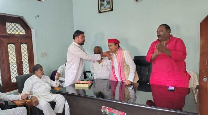गाजीपुर।शनिवार को लोहिया भवन पर अल्पसंख्यक सभा की मासिक बैठक की गई। जिसमें अल्पसंख्यक सभा के अध्यक्ष तौकीर खान अलीगढ़ मुस्लिम विश्वविद्यालय को अल्पसंख्यक दर्जा देने का रास्ता साफ होने के लिए सुप्रीम कोर्ट का धन्यवाद किया। खुशी में समाजवादी पार्टी के जिला अध्यक्ष गोपाल यादव सहित तमाम लोगों को मिठाई खिलाकर खुशी का इजहार किया।