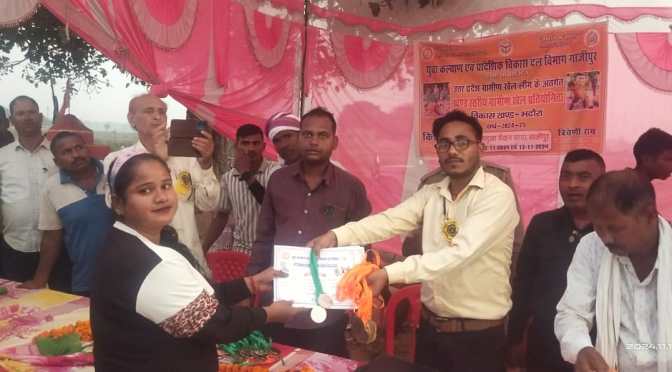 गाजीपुर।युवा कल्याण एवं प्रादेशिक विकास दल विभाग द्वारा खण्ड स्तरीय ग्रामीण खेल प्रतियोगिता विकास खण्ड-भदौरा का आयोजन 12 एवं 13 नवम्बर को ग्राम सभा- सायर के बलुआ मैदान में सम्पन्न हुआ। जिसका उद्घाटन ग्राम प्रधान पिता श्याम नारायण सिंह यादव द्वारा फीता काट कर किया गया। खेल का संचालन किशन चंद, क्षेत्रीय युवा कल्याण एवं प्रादेशिक विकास दल अधिकारी, भदौरा द्वारा किया गया। जिसमें एथलेटिक्स, कुश्ती, वालीबाल एवं कबड्डी इत्यादि खेल के विजयी खिलाडियो को प्रमाण पत्र एवं पुरस्कार वितरित किया गया। प्रतियोगित तीन वर्गाे में आयोजित हुई – सब-जूनियर, जूनियर एवं सीनियर वर्ग। बालक सबजूनियर वर्ग में 100 मी. दौड़ में जुगनू सिंह यादव,एवं 800 मीटर मे कृष्णा चौधरी प्रथम रहे। जूनियर वर्ग 100 मीटर दौड़ मे विजय यादव एवं बालिका वर्ग मे आराधना प्रथम रही। बालक वॉलीबॉल सीनियर वर्ग में करहिया की टीम प्रथम एवम देवल की टीम द्वितीय स्थान पर रही। बालक कबड्डी सीनियर वर्ग में ग्रामसभा-रायेसेनपुर की टीम प्रथम एवं ग्राम- सायर की टीम द्वितीय स्थान पर रही। सब जूनियर बर्ग में ग्राम सभा सेवराई प्रथम एवं गहमर द्वितीय रही। लंबी कूद सबजूनियर वर्ग में प्रिंस यादव प्रथम स्थान पर रहे। इसी प्रकार अन्य प्रतियोगिताओं में भी बच्चो को प्रथम, द्वितीय के तृतीय स्थान प्राप्त करने वालो को प्रमाण पत्र व पुरस्कार वितरित किया गया। कार्यक्रम में गंगा प्रसाद, मनोज कुमार भारती, रामअवध यादव, संतोष कुमार गौतम आदि का विशेष सहयोग रहा। खण्ड स्तर पर प्रथम स्थान प्राप्त करने वाले खिलाड़ी जिला स्तर की प्रतियोगिता में भाग लेंगे कार्यक्रम का समापन मुन्ना द्वारा किया गया। किशन चंद क्षेत्रिय युवा कल्याण अधिकारी द्वारा सभी का आभार व्यक्त किया गया।