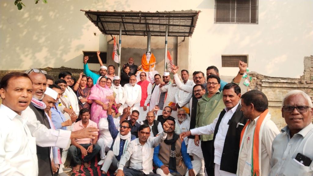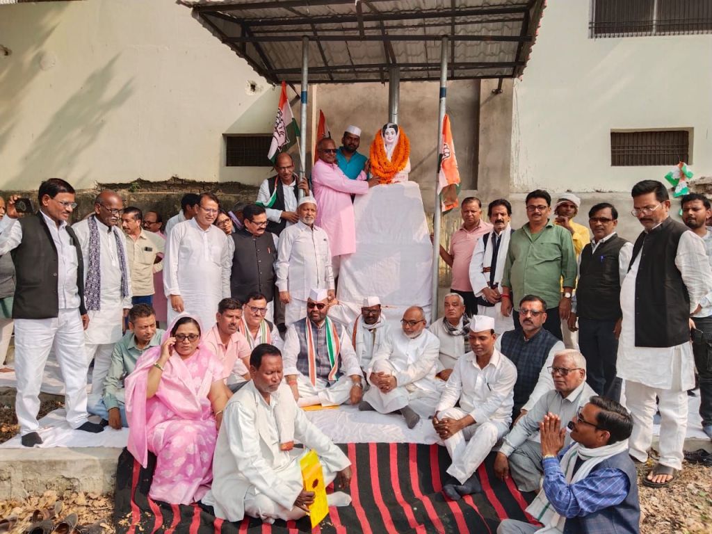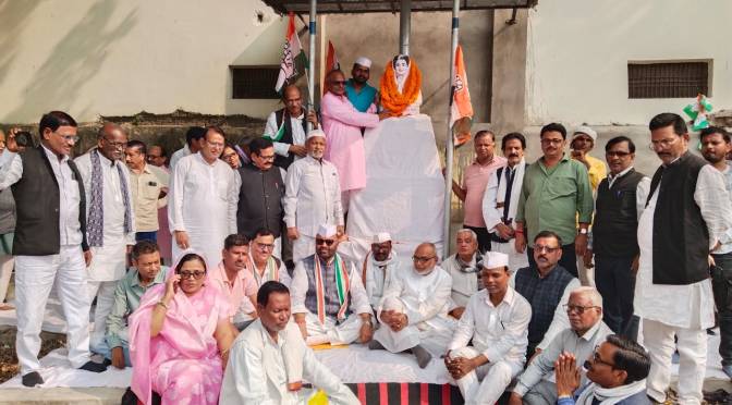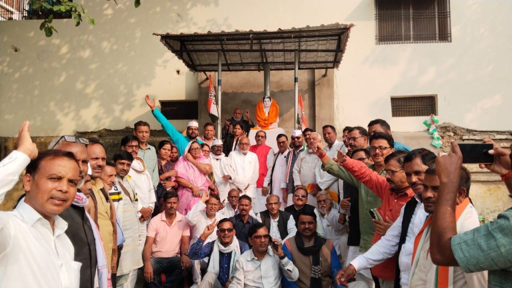पूर्व प्रधानमंत्री स्वर्गीय इंदिरा गांधी की मूर्ति पर माल्यार्पण कर कांग्रेस ने आयरन लेडी को किया याद।