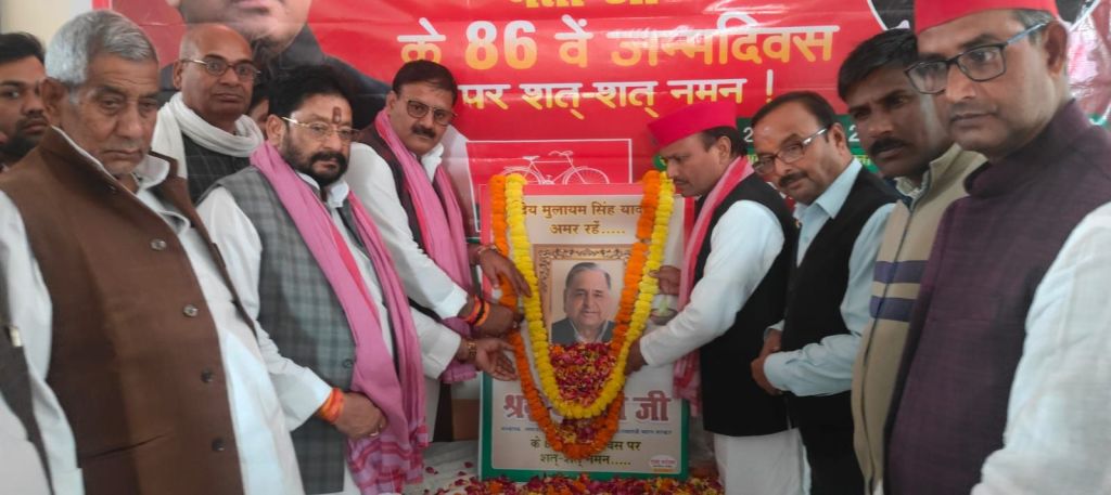 ग़ाज़ीपुर।प्रदेश नेतृत्व के आह्वान पर शुक्रवार को समाजवादी पार्टी के तत्वावधान में समाजवादी पार्टी के संस्थापक,देश के रक्षा मंत्री एवं प्रदेश के पूर्व मुख्यमंत्री और पार्टी के संरक्षक रहे श्रृद्धेय नेताजी मुलायम सिंह यादव की जयंती पर माल्यार्पण ,सांस्कृतिक कार्यक्रम एवं विचार गोष्ठी आयोजित हुई ।
