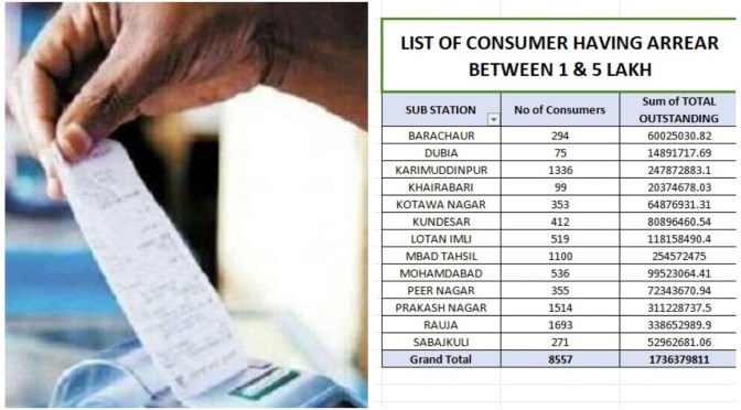 गाजीपुर। प्रबन्ध निदेशक पूर्वांचल निगम वाराणसी के निर्देश पर अधिक बिजली बिल बकाया एवं ज्यादा बिजली चोरी वाले क्षेत्रों को चिन्हित कर रविवार को विशेष मेगा अभियान चलाने के निर्देश दिए गए है, जिसके क्रम में अधिशाषी अभियंता विद्युत वितरण खण्ड नगर आशीष कुमार ने बताया कि क्षेत्रवार बड़े बकायेदारों 1 लाख से अधिक को चिन्हित कर लिया गया है। खंड में कुल 8557 उपभोक्ता एक लाख से अधिक के बकायेदार है जिनमें 173 करोड़ की धनराशि बकाया है। सबसे अधिक 1693 बकायेदार रौजा उपकेंद्र से संबंधित है। 1514 बकायेदार प्रकाशनगर उपकेंद्र,1100 बकायेदार मोहम्दाबाद तहसील उपकेंद्र से संबंधित सहित अन्य ग्रामीण क्षेत्रों से संबंधित है। प्रत्येक उपखंड अधिकारी अपने समस्त अवर अभियंताओं, कर्मचारियों के साथ बकाया वसूली एवं बिजली चोरी रोकने हेतु अभियान चलाएंगे। बिजली चोरी पाए जाने पर संयोजन विच्छेदित कर दिया जाएगा एवं पेनाल्टी की धनराशि जमा करने के पश्चात ही संयोजन जोड़ा जाएगा। उन्होंने कहा कि जिनका बकाया 10000 रुपए से अधिक है। उनके संयोजन को काट दिया जाएगा एवं जमा करने के पश्चात ही संयोजन जोड़ा जाएगा। यदि बिना बकाया जमा कराए संयोजन जुड़ा पाया गया तो मुक़दमा दर्ज कराया जाएगा। कहा कि जो उपभोक्ता लंबे समय से बकाया बिल एवं बिजली चोरी की पेनाल्टी की धनराशि नहीं जमा करा रहे हैं उनके विरुद्ध जिलाधिकारी के माध्यम से आरसी भेजकर कुर्की की कार्यवाही की जाएगी। उन्होंने समस्त उपभोक्ताओं से अपील है कि अपना बकाया विद्युत बिल जमा कराकर बिजली मीटर से ही विद्युत का उपभोग करें।
