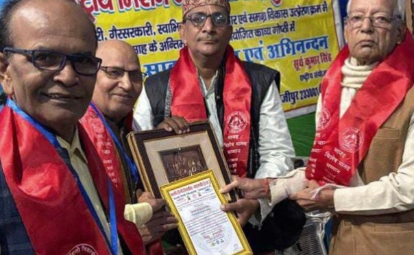 गाजीपुर। श्रमजीवी पत्रकार यूनियन के जिला महामंत्री विजय कुमार मधुरेश को डाक्टरेट मानद समतुल्य विद्या वाचस्पति विशेष मानद सम्मान से सम्मानित किये जाने के बाद संगठन के वरिष्ठ पदाधिकारी प्रदेश अध्यक्ष व राष्ट्रीय पार्षद ने बधाई दी। शिक्षक के बाद अब डाक्टर विजय कुमार मधुरेश हो गये है। श्रमजीवी पत्रकार एसोसिएशन की स्थानीय जिला इकाई की ओर से उन्हें बधाई दी गयी है।