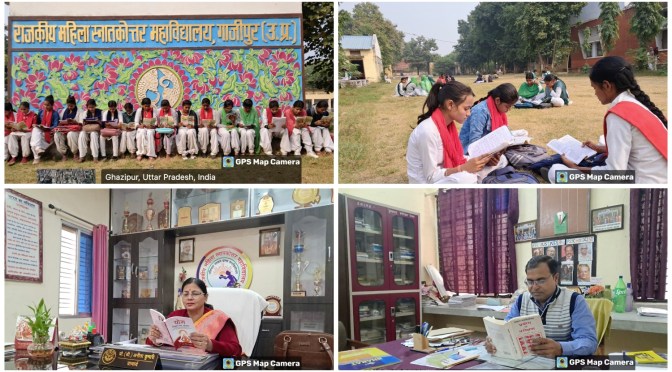 गाजीपुर। राजकीय महिला स्नातकोत्तर महाविद्यालय में गुरुवार को ‘पढ़े महाविद्यालय, बड़े महाविद्यालय’ कार्यक्रम का आयोजन किया गया । इसके अंतर्गत महाविद्यालय के प्राचार्य, प्राध्यापको, कर्मचारियो एवं विद्यार्थियों ने अपने निर्धारित स्थान पर रहते हुए पुस्तके पढ़ी तथा पुस्तकों के महत्व पर चर्चा करते हुए इसकी तस्वीर महाविद्यालय की सोशल मीडिया पेज पर पोस्ट किया ताकि लोग जीवन में पुस्तकों के महत्व को समझें और पुस्तकों को अपने जीवन का सच्चा साथी बनाएं।