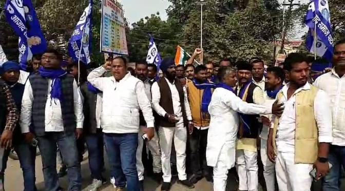 गाजीपुर। आजाद समाज पार्टी, भीम आर्मी द्वारा जुलूस निकालकर संभल की घटना की सुप्रीम कोर्ट की निगरानी में जांच कराए जाने की मांग की गई। भीम आर्मी के नेता और कार्यकर्ता जुलूस की शक्ल में मंगलवार को जिला मुख्यालय पहुंचे और संभल की घटना पर आक्रोश जाहिर किया। संभल की घटना को लेकर राष्ट्रपति को संबोधित ज्ञापन जिलाधिकारी को सौंपा गया।आजाद समाज पार्टी ने राष्ट्रपति से संभल की घटना की जांच सुप्रीम कोर्ट के निगरानी में कराए जाने की मांग की है। उन्होंने कहा कि 24 नवंबर को उत्तर प्रदेश के संभल में जमा मस्जिद के सर्वे के दौरान उत्तर प्रदेश सरकार के स्थानीय प्रशासन के गलत मैनेजमेंट के कारण यहां पर घोर अराजकता और दंगा हुआ। इस दंगे में चार नवयुवकों की जान चली गई एवं कई आम नागरिक और पुलिसकर्मी घायल हो गए। भीम आर्मी के जिला संयोजक डॉ मनोज कुमार गौतम ने कहा कि भाजपा सरकार में दलितों पर अत्याचार हो रहा है। संभल की घटना की निष्पक्ष जांच की मांग को लेकर हम लोगों ने पत्रक भेजा है। आजाद समाज पार्टी ने राष्ट्रपति से मांग किया कि इस घटना के निष्पक्ष जांच सुप्रीम कोर्ट निगरानी में कराई जाए तथा अज्ञात के नाम पर निर्दोष लोगों को न फसाया जाए।