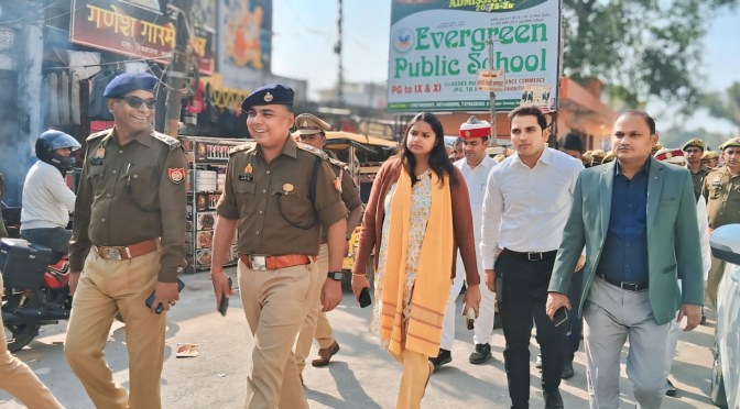 गाजीपुर।जिलाधिकारी आर्यका अखौरी एवं पुलिस अधीक्षक डा. ईरज राजा द्वारा कानून-व्यवस्था/जुमे की नमाज के दृष्टिगत थाना कोतवाली क्षेत्रान्तर्गत धार्मिक स्थलों के आस पास निरंतर भ्रमणशील एवं पैदल गस्त कर संदिग्ध व्यक्तियों/अराजक तत्वों पर कड़ी नजर रखी जा रही है। लोगों से शान्ति व्यवस्था बनाए रखने के लिए अपील किया गया । इस अवसर पर अपर जिलाधिकारी वि0/रा0 दिनेश कुमार,अपर पुलिस अधीक्षक नगर ज्ञानेन्द्र, उपजिलाधकारी सदर प्रखर उत्तम, क्षेत्राधिकारी नगर सुधाकर पाण्डेय व प्रभारी निरीक्षक कोतवाली मय पुलिस बल मौजूद थे ।