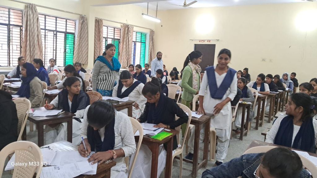 गाजीपुर। राजकीय महिला स्नातकोत्तर महाविद्यालय में शुक्रवार को वीर बहादुर सिंह पूर्वांचल विश्वविद्यालय जौनपुर की विषम सेमेस्टर की परीक्षाएं जारी रही। आज तीनों पालियों में परीक्षाएं संपन्न हुई। प्रथम पाली में बीए प्रथम वर्ष अर्थशास्त्र की परीक्षा संपन्न हुई जिसमें 81 पंजीकृत शिक्षार्थियों में 79 उपस्थित रहे। जबकि द्वितीय पाली में चित्रकला विषय में 55 पंजीकृत विद्यार्थियों में से 53 उपस्थित रहे। तृतीय पाली में बीए पंचम सेमेस्टर शिक्षाशास्त्र, बीएससी पंचम सेमेस्टर जंतु विज्ञान एवं बी ए प्रथम सेमेस्टर संस्कृत की परीक्षा संपन्न हुई। जिसमें उपरोक्त विश्व में पंजीकृत सभी परीक्षार्थी क्रमशः 111, 88 एवं 34 उपस्थित रहे।