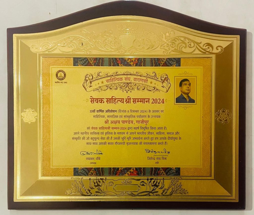 डॉ. अक्षय पाण्डेय की अब तक चार कृतियाॅं प्रकाशित हैं। इसके अतिरिक्त देश की प्रतिष्ठित पत्र-पत्रिकाओं के साथ ही तमाम समवेत संकलनों में रचनाऍं प्रकाशित हैं। वर्तमान में डाॅ.पाण्डेय इण्टर कॉलेज करण्डा में वरिष्ठतम हिन्दी-प्रवक्ता के रूप में कार्यरत हैं। इनकी इस साहित्यिक उपलब्धि के लिए नगर की प्रतिष्ठित संस्था ‘साहित्य चेतना समाज, गाजीपुर’ के संस्थापक अमरनाथ तिवारी ‘अमर’, संगठन सचिव प्रभाकर त्रिपाठी के साथ ही संस्था के सम्मानित प्राधिकारी एवं नगर के प्रबुद्धजनों ने बधाई के साथ ही रचनात्मक क्षेत्र में उत्तरोत्तर प्रगति की कामना की। बैठक में प्रमुख रूप से प्रभाकर त्रिपाठी, आनन्द प्रकाश अग्रवाल, अमरनाथ तिवारी अमर, संजीव गुप्त, डाॅ.रविनन्दन वर्मा, हीरा राम गुप्त, हर्षित श्रीवास्तव, राजीव मिश्र, शशिकांत राय आदि उपस्थित थे।