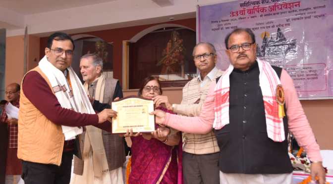 गाजीपुर। साहित्य चेतना समाज की बैठक बुधवार को संस्था के संस्थापक अमरनाथ तिवारी ‘अमर’ के नगर के वंशीबाजार स्थित स्वामी विवेकानन्द काॅलोनी में हुई। बैठक में सुपरिचित नवगीतकार, संस्था के द्वारा अनवरत संचालित साहित्यिक कार्यक्रम ‘चेतना-प्रवाह’ के स्थायी संचालक डॉ.अक्षय पाण्डेय को वाराणसी की चर्चित साहित्यिक संस्था ‘साहित्यिक संघ’ के 33वें वार्षिक अधिवेशन में ‘सेवक साहित्यश्री सम्मान-2024’ से सम्मानित करने पर प्रसन्नता व्यक्त की गई। रेवतीपुर के निवासी नवगीतकार डॉ.अक्षय पाण्डेय को यह सम्मान साहित्य में राष्ट्रीय स्तर पर नवगीत के क्षेत्र में उनके उत्कृष्ट अवदान के लिए प्रदान किया गया। इसके पूर्व इन्हें सन् 2021 में नवगीत के क्षेत्र में इनके योगदान के लिए ‘पं. रामानुज त्रिपाठी स्मृति नवगीत साहित्य सम्मान’ एवं ‘गोपाल राम गहमरी नवगीतकार सम्मान’ प्रदान किया जा चुका है।