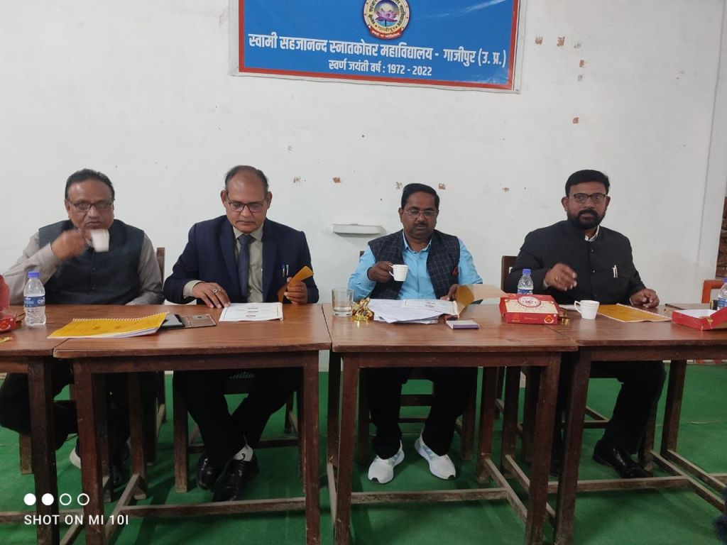 गाजीपुर। नगर के स्वामी सहजानन्द महाविद्यालय के राजनीतिक शास्त्र विभाग में शोध उपाधि हेतु शुक्रवार को प्री-सबमिशन सेमिनार का आयोजन किया गया। विभाग में शोधरत कुल चार छात्रों का प्री सबमिशन प्रस्तुतीकरण हुआ। डॉ कृष्णानंद चतुर्वेदी के शोध निर्देशन में सुबाष चंद्र यादव तथा मनीष कुमार पांडेय ने शोध प्रस्तुतीकरण किया। राजनीति शास्त्र विभाग में ही शोधरत अवधेश कुमार पांडेय तथा अरुण कुमार ने भी इस संगोष्ठी में अपने शोध कार्यों को प्रस्तुत किया। प्रस्तुतीकरण संगोष्ठी की अध्यक्षता महाविद्यालय के प्राचार्य प्रो. डॉ. वी के राय ने किया। महाविद्यालय के शोध समिति के सभी सदस्य इस शोध सगोष्ठी में सम्मिलित थे। शोध प्रस्तुतीकरण के संदर्भ में दिग्विजय नाथ स्नातकोत्तर महाविद्यालय गोरखपुर के प्राचार्य तथा शोध निदेशक प्रो. डॉ. ओ पी सिंह भी उपस्थित रहे।