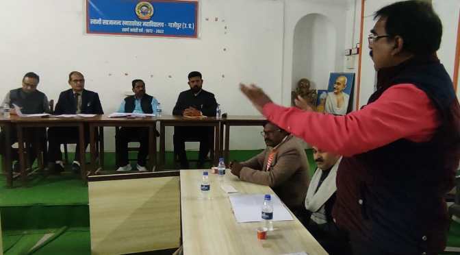उन्होंने डॉ. भीमराव अंबेडकर तथा गांधी के तुलनात्मक अध्ययन को स्पष्ट करते हुए कहा कि गांधी के अतिरिक्त अंबेडकर जी सर्वमान्य सुधारों के प्रणेता थे. अंबेडकर के प्रभाव तथा सुझाव को वर्तमान के सभी राजनीतिक दलों को स्वीकार करना पड़ा है. प्रो. ओ पी सिंह ने कहा कि, राजनीतिक दलों ने कुछ स्वभावगत ,कुछ चुनावगत तथा कुछ प्रभावगत परिवेश में अंबेडकरवादी विचारों को स्वीकार किया है। इस संगोष्ठी में प्रो. अवधेश नारायण राय , प्रो. विलोक सिंह, डा. रामधारी राम ,डॉ राकेश पांडेय, डॉ. प्रमोद कुमार श्रीवास्तव, डा. जयशंकर राय, अजय कुमार सिंह, कुशल पाल सिंह , डॉ नर नारायण राय ,डा सतीश कुमार पांडेय, डॉ सतीश राय, तथा डॉ. विजय कुमार ओझा आदि उपस्थित थे। सदस्यों ने शोध के गुणवत्ता को स्थापित करने के लिए अनेक सुझाव दिए। संगोष्ठी के अंत में महाविद्यालय के प्राचार्य प्रो. (डा) वी के राय ने शोधरत छात्रों को जीवन में राजनीतिक समस्याओं के गहन विश्लेषण के प्रति रुचि को बनाए रखने की सीख दी। उन्होंने कहा कि स्तरीय शोध कार्य उच्च शिक्षा संस्थाओं के मानक हैं. प्रो. राय ने संगोष्ठी में प्रस्तुतीकरण देने वाले सभी शोधार्थी छात्रों को बधाई देते हुए उनके मंगलमय एवं उज्जवल भविष्य की कामना की।