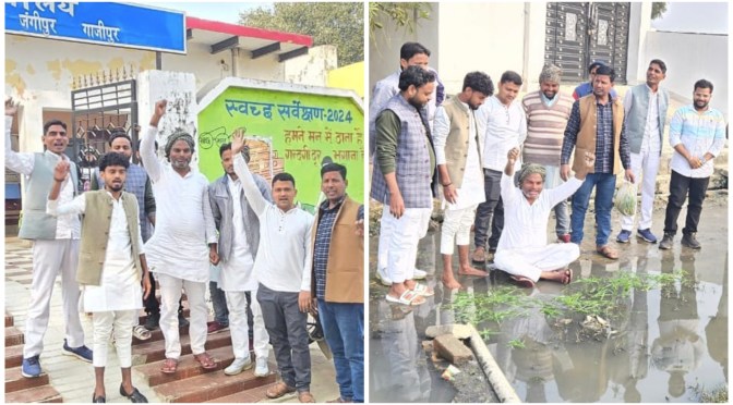 इससे नाराज सभासदों ने नगर पंचायत कार्यालय के बाहर चेयरमैन के खिलाफ नारेबाजी करने लगे। वही सभासदों ने वार्ड नंबर दो अम्बेडकर नगर में सड़क के बीचो बीच लग रहे जल जमाव व गंदे पानी के बीच बैठकर गेंहू रोपाई कर प्रदर्शन कर विरोध प्रगट किया।