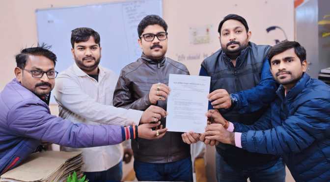 उन्होंने बताया कि इस मामले का जांच किसी स्वतंत्र एजेंसी से करवा कर फर्जी मुकदमे को तत्काल प्रभाव से समाप्त कराया जाए साथ ही सहायक अध्यापिका के विरुद्ध विभागीय कार्रवाई किया जाए। पत्र देने वालों में शुभम मोदनवाल, संदीप कश्यप, ओमप्रकाश, आशीष, शिवम यादव, पारस कुशवाहा सहित दर्जनों पत्रकार मौजूद रहे।