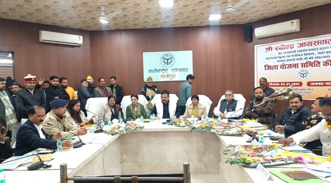 गाजीपुर। राज्य मंत्री (स्वतंत्र प्रभार) स्टाम्प व न्यायालय शुल्क पंजीयन विभाग उत्तर प्रदेश सरकार /जनपद के प्रभारी मंत्री रवीन्द्र जायसवाल ने शनिवार को जिला योजना समिति की बैठक में शासन की योजनाओं एवं कार्यक्रमों के क्रियान्वयन की विस्तृत समीक्षा की। बैठक मे राज्य सभा सांसद डा0 संगीता बलवंत, बलिया सांसद सनातन पाण्डेय, एम एल सी विशाल सिंह चंचल, जिला पंचायत अध्यक्ष सपना सिंह, विधायक जमानियां ओम प्रकाश सिंह, विधायक सदर जैकिशुन साहू, विधायक जंगीपुर डा0 वीरेन्द्र यादव, विधायक जखनियां बेदीराम, नगर पालिका अध्यक्ष सरिता अग्रवाल, नामित जिला पंचायत सदस्य एंव पुलिस अधीक्षक डा0ईरज राजा, मुख्य विकास अधिकारी संतोष कुमार वैश्य, अपर जिलाधिकारी वि0रा0 दिनेश कुमार, अर्थ एवं संख्या अधिकारी चन्द्रशेखर प्रसाद एवं समस्त जनपदस्तरीय अधिकारी उपस्थित रहे। समीक्षा मे प्रभारी मंत्री ने कृषि, उद्यान, गन्ना, पशुपालन, दुग्ध,वन सहाकारिता, मत्स्य, ग्राम्य विकास विभाग, मनरेगा, जिला ग्राम्य विकास अभिकरण, पंचायती राज विभाग, निजी लघु सिंचाइ, राजकीय नलकूप, अतिरिक्त उर्जा स्रोत नेडा एवं पीएम सूर्यघर, लो0नि0वि0, खादी एव ग्रामोद्योग विभाग, रेशम उद्योग, पर्यटन, बेसिक, माध्यमिक शिक्षा, खेलकूद, युवा कल्याण, जिला उद्योग, सेवायोजन, चिकित्सा एवं जनस्वास्थ्य,होम्योपैथिक,आयुर्वेदिक, नगर विकास, समाज कल्याण, पिछड़ावर्ग, अल्पसंख्यक, दिव्यांगजन, महिला कल्याण एवं बाल विकास एवं पुष्टाहार विभाग की द्वारा संचालित विभागीय योजनाओ की प्रगति जानी एवं सम्बन्धित अधिकारियों कोे विभागीय योजनाओं के त्वरित गति से क्रियान्वित कराये जाने के निर्देश दिए। कलेक्ट्रेट सभागार में आयोजित बैठक में प्रभारी मंत्री श्री जायसवाल ने कहा कि सभी अधिकारी कर्मचारी सकारात्मक पहल करते हुए समाज के अंतिम छोर में खड़े व्यक्ति को शासन की जनकल्याणकारी योजनाओं से लाभान्वित करतें हुए सभी अपने दायित्वों का निर्वहन करें। सभी विभाग आपसी समन्वय के साथ कार्य करें तथा लोगों को विभागीय योजनाओं का लाभ दिलायें। उन्होने निर्देश दिया कि जो भी शासन की योजना प्रस्तावित होती है तो उसकी सूची से जनप्रतिनिधियो को अवश्य अवगत कराये। उन्होने निर्देश दिया कि ग्रामीण अंचलो मे जैविक खेती को बढावा देने एवं पॉली हाउस के लिए चौपाल लगाकर किसानो का जागरूक किया जाये तथा चौपाल मे जनप्रतिनिधियों को भी आमंत्रित किया जाये। किसानो के गन्ना के भुगतान मे किसी प्रकार की ढिलाई न हो समय से भुगतान किया जाये। उन्होने पशुपालन विभाग की समीक्षा करते हुए निर्देश दिया पशुपालको को गंगातीरी गाय की दूध की उपयोेगिता के बारे मे लोगो को जागरूक किया जाये, उन्होने कहा कि बी एच यू के वैज्ञानि