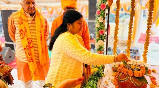 गाजीपुर।रविवार को ददरीघाट गाजीपुर श्री चित्रगुप्त मंदिर के प्रांगण में आयोजित 51 कुण्डीय शक्ति संवर्धन गायत्री महायज्ञ एवं कलश यात्रा कार्यक्रम में मुख्य अतिथि राज्यसभा सांसद डा. संगीता बलवंत ने कार्यक्रम का शुभारंभ दीप प्रज्वलित एवं पूजन करके किया।