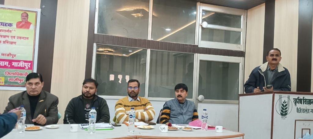 गाजीपुर।प्रधानमंत्री कृषि सिंचाई योजना (पर ड्राप मोर क्राप-माइक्रोइरिगेशन) अन्तर्गत कृषि विज्ञान केन्द्र, पी०जी० कालेज में एक दिवसीय प्रशिक्षण कार्यक्रम का आयोजन किया गया। कार्यक्रम में उप निदेशक कृषि अतीन्द्र कुमार सिंह, जिला उद्यान अधिकारी आशीष कुमार, वरिष्ठ वैज्ञानिक डा.वी०के० सिंह, वैज्ञानिक डा.डी०के० सिंह, वैज्ञानिक डा.ओंकार सिंह, वैज्ञानिक डा. प्रमोद कुमार सिंह, कृषि विज्ञान केन्द्र, पी०जी० कालेज गाजीपुर, योजना अधिकारी संजय कुमार सिंह तथा निर्माता फर्म मेसर्स किसान इरिगेशन के प्रतिनिधि घनश्याम सिंह, मेसर्स रूंगटा इरिगेशन के प्रतिनिधि नीरज वर्मा व मेसर्स कोठारी इरिगेशन के प्रतिनिधि नरेन्द्र उपाध्याय की उपस्थिति में प्रशिक्षण सम्पन्न कराया गया। जनपद के 50 प्रगतिशील कृषकों को योजना से संबंधित साहित्य वितरित करते हुए वैज्ञानिकों के माध्यम से योजना की जानकारी तथा प्रोत्साहित करते हुए ड्रिप सिंचाई, मिनी स्प्रिंकलर, पोर्टबल स्प्रिंकलर, माइक्रो स्प्रिंकलर को अधिक से अधिक किसानों द्वारा उद्यान विभाग से लाभ लेने हेतु प्रेरित किया गया। जिला उद्यान अधिकारी द्वारा अवगत कराया गया कि प्रधानमंत्री कृषि सिंचाई योजनान्तर्गत कृषकों के लिए ड्रिप व मिनी स्प्रिंकलर हेतु 90 प्रतिशत तथा पोर्टबल स्प्रिंकलर व रेनगन हेतु 75 प्रतिशत का अनुदान दिया जाता है। उप निदेशक कृषि द्वारा किसानों को अपने विभाग से संबंधित योजनाओं की जानकारी देते हुए ड्रिप सिंचाई से होने वाले लाभ के बारे जानकारी दी गई। कृषि वैज्ञानिक डा.वी०के० सिंह, डा. ओंकार सिंह, डा. डी०के० सिंह द्वारा वैज्ञानिक खेती के बारे में जानकारी देते हुए यह बताया गया कि ड्रिप व स्प्रिंकलर एक तरफ जहाँ 25 से 30 प्रतिशत पानी की बचत होती है, वही दूसरी तरफ 30 से 35 प्रतिशत उत्पादन में वृद्धि होती है। कार्यक्रम की समाप्ति के पश्चात कृषकों को प्रशिक्षण प्रमाण-पत्र भी वितरित किया गया तथा अधिक से अधिक संख्या में ड्रिप व स्प्रिंकलर की पद्धति से सिंचाई करने हेतु प्रेरित किया गया।
