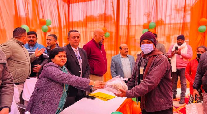 गाजीपुर।मुख्य चिकित्साधिकारी के कार्यालय प्रांगण में प्रधानमंत्री टीवी मुक्त भारत अभियान के अन्तर्गत राज्य सभा सांसद डा. संगीता बलवंत द्वारा 100 टीवी मरीजों को गोद लिया गया है। जिन को राज्यसभा सासंद अपने हाथों से पोषण पोटली वितरण किया।राज्यसभा सांसद द्वारा टीवी मुक्त भारत अभियान के लिए जनमानस के लिए अपील भी पढ़ा ताकि टीवी बिमारी को लेकर जनमानस में जागरूकता पैदा किया जा सकें। उन्होने अधिक से अधिक लोगों को टीवी मुक्त भारत अभियान में जुड़ने के लिए अपील भी किया। इस कार्यक्रम को लेकर सांसद ने कहा कि प्रधानमंत्री का सपना है कि 2025 तक टी बी मुक्त भारत हो और हमारा प्रयास है कि 2025 तक टी बी मुक्त गाजीपुर बने। इस कार्यक्रम में मुख्य चिकित्सा अधिकारी डा. सुनील पाण्डेय द्वारा 25 टीवी मरीजों को, प्राचार्य मेडिकल कॉलेज डा. आनन्द मिश्रा द्वारा स्वयं 25 टीवी मरीजों को तथा अपने मेडिकल कॉलेज की सभी चिकित्सकों एवं कर्मचारियों से अपील किया कि सभी लोग निः क्षय मित्र बनकर टीवी मरीजों को गोंद लेकर टीवी मुक्त भारत अभियान का हिस्सा बने। इसी क्रम में मुख्य चिकित्सा अधीक्षक जिला चिकित्सालय डा. राजेश कुमार सिंह द्वारा 25 टीवी मरीजों को गोद लिया गया। जिला क्षयरोग अधिकारी डा. संजय कुमार द्वारा 25 टीवी मरीजों को गोद लेकर पोटली दिए जाने के लिए आगे आए । क्षयरोग विभाग के सभी कर्मचारी एवं अधिकारियों द्वारा दो-दो टीवी मरीजों को गोद लेकर पोषण पोटली दिया गया। इस कार्यक्रम में मुख्य चिकित्सा अधिकारी कार्यालय के अपर मुख्य चिकित्सा अधिकारी डॉ जय नाथ सिंह, अपर मुख्य चिकित्सा अधिकारी डॉ सुजीत पांडे, जिला मलेरिया अधिकारी मनोज कुमार सिंह, अपर मुख्य चिकित्सा अधिकारी एनएचएम डॉ मनोज कुमार सिंह, जिला कार्यक्रम समन्वयक डॉ मिथिलेश कुमार सिंह, जिला पी पी एम कोऑर्डिनेटर अनुराग पांडे, सुनील कुमार वर्मा, वेंकटेश्वर प्रसाद शर्मा, संजय सिंह यादव, अरविंद अश्वनी, इंद्रेश, अजय तथा क्षयरोग विभाग के सभी अधिकारी एवं कर्मचारी उपस्थित थे।
