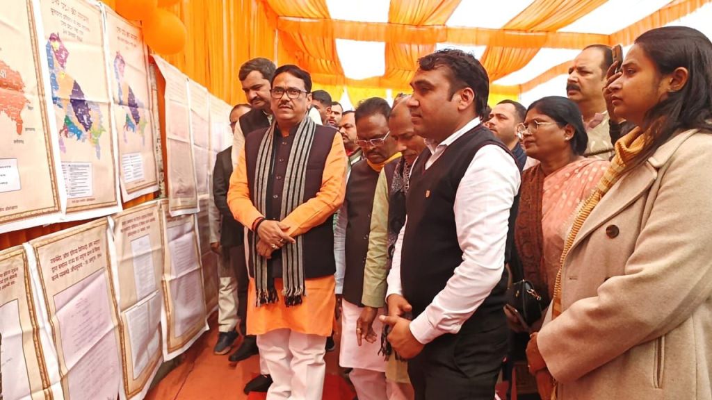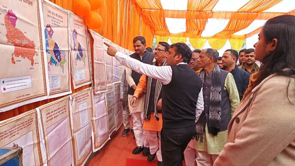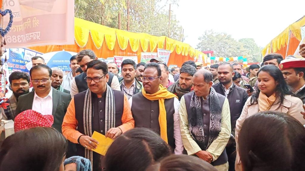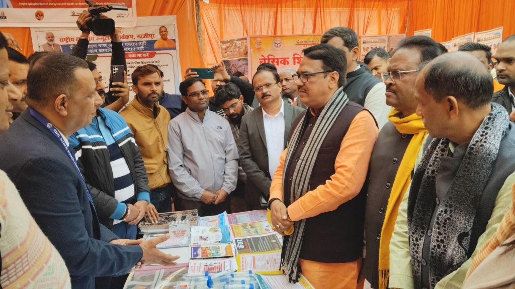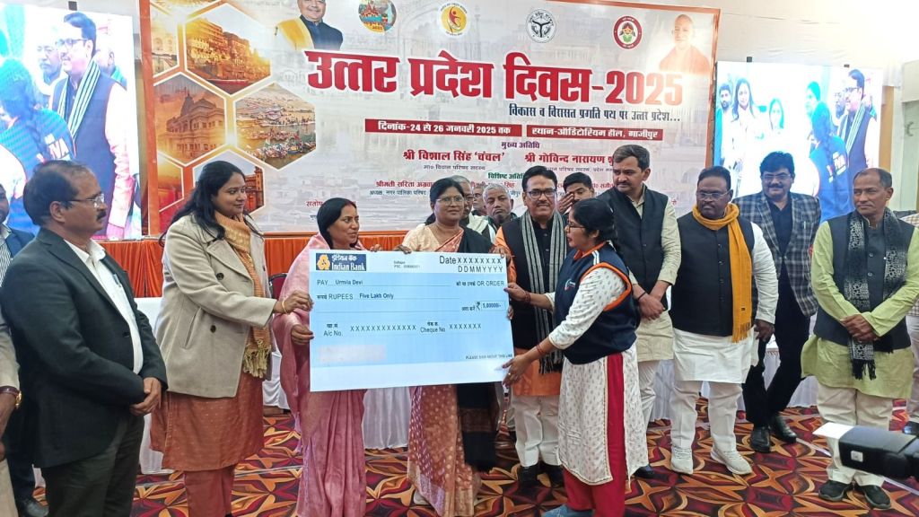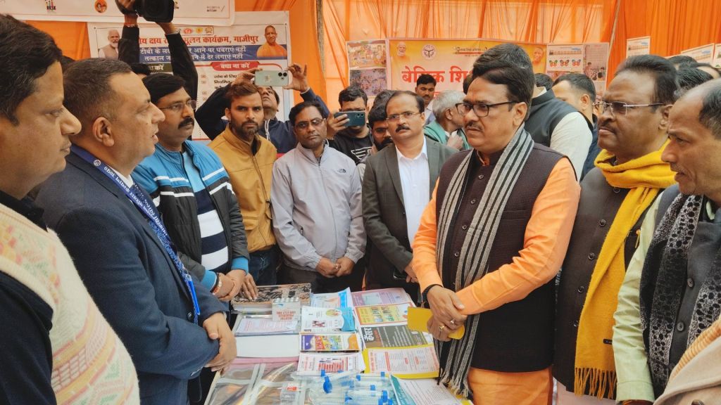 गाजीपुर।24-26 जनवरी तक तीन दिवसीय आयोजित प्रदर्शनी उ0प्र0 प्रदेश दिवस का शुभारंभ मुख्य अतिथि सदस्य विधान परिषद/प्रदेश महामंत्री गोविंद नारायण शुक्ल एवं सदस्य विधान परिषद विशाल सिंह ‘चंचल‘ तथा विशिष्ट अतिथियों एंव जिलाधिकारी एवं मुख्य विकास अधिकारी ने संयुक्त रूप से ऑडिटोरियम परिसर में फीता काटकर एवं दीप प्रज्ज्वलित कर किया। यह प्रदर्शनी जनपद में 24-26 जनवरी आयोजित रहेगी। उत्तर प्रदेश दिवस के अवसर पर परिसर में विभिन्न विभागो द्वारा प्रदर्शनी लगाई गई थी। प्रदर्शनी का अवलोकन करने के पश्चात मुख्य अतिथि मंचाशीन होने के उपरान्त कार्यक्रम में मुख्य अतिथि का स्वागत स्कूली बच्चियो द्वारा स्वागतगीत, सरस्वती वन्दना गाकर किया गया। समारोह में विभिन्न स्कूल के छात्र-छात्राओ द्वारा सांस्कृतिक कार्यक्रम, बालिका आत्म रक्षा, कलाकारो द्वारा टी बी रोग के बचाव हेतु लघु नाटक की प्रस्तुति दी गई जो सराहनीय रहा। इस अवसर पर ऑडिटोरियम सभागार में लखनऊ से मुख्यमंत्री योगी आदित्य नाथ, उपराष्ट्रप्रति जगदीप धनखड़ द्वारा उत्तर प्रदेश दिवस के अवसर पर किए गये सम्बोधन का लाइव प्रसारण भी दिखाया एवं सुना गया।