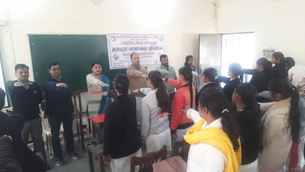 तदुपरांत प्राचार्य प्रो. अनिता कुमारी द्वारा सभी को मतदान संबंधी शपथ दिलाई गई। संगोष्ठी के दौरान महाविद्यालय के प्राध्यापक डॉ अमित यादव डा. गजनफर, डॉ शिव कुमार डॉ पीयूष डॉक्टर निरंजन सहित स्वयंसेवी छात्राएं उपस्थित रहे। राष्ट्रीय सेवा योजना का प्रथम एकदिवसीय शिविर कार्यक्रम अधिकारी डॉ ओमशिवानी, डा. नेहा एवं डॉ. मनीष सोनकर के सक्षम नेतृत्व में सकुशल संपन्न हुआ।