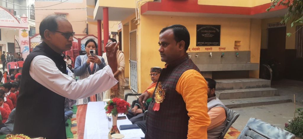 गाजीपुर। गणतंत्र दिवस के 76वें वर्षगांठ के अवसर पर राष्ट्रीय स्वयंसेवक संघ कार्यालय कुटी भवन रायगंज में गणतंत्र दिवस पर सफाई नायक शेषनाथ ने तिरंगा फहराकर राष्ट्रगान गाकर समाज मे समरसता का संदेश दिया। कार्यक्रम में सह विभाग प्रचारक दीपक ने अपने उदबोधन मे बताया कि हम समाज में सफाईकर्मियो का विशेष योगदान है इनके योगदान के बिना समाज का संचालन नही किया जा सकता, इनके महत्व व योगदान को पिछले कोरोना काल, मेला आयोजन में सराहा गया, समाज में इनके इतने महत्वपूर्ण का निस्पादन किया जाता है जिससे समाज का कोई भी तबका अछुता नही है। जो समाज हमारा पहले से समरसता के भाव से बंधा हुआ है उसे हमे समय समय पर सम्मानित करना होगा। उसके समाज मे किए जा रहे योगदान को भुलाया नही जा सकता। गणवंत्र दिवस जैसे महत्वपूर्ण दिवस को हमे इन्हे बढ़ चढ़ कर सम्मानित करना चाहिए। जिला प्रचाारक सूरज, विहिप सेवा प्रमुख काशी प्रांत दिनेश चंद व नगर संचालक दीनदयाल ने अपना विचार व्यक्त किए। कार्यक्रम का संचालन सह नगर कार्यवाह अभिषेक ने किया। इसी क्रम में सरस्वती शिशु मंदिर रायगंज में बच्चों ने संस्कृतिक गीत गाकर अतिथियों का स्वागत किया।