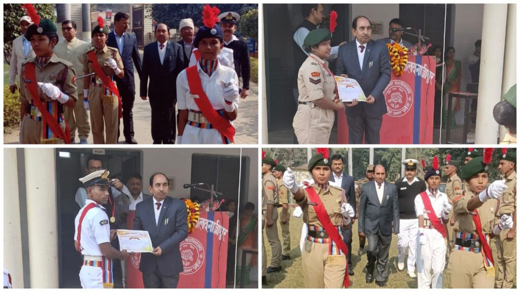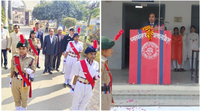 प्राचार्य राघवेन्द्र कुमार पाण्डेय ने एनसीसी थल सेवा और जल सेना इकाई का निरीक्षण कर सलामी ली। एनसीसी, रोवर्स-रेंजर्स के उत्कृष्ट प्रदर्शन करने वाले छात्र-छात्राओं को मेडल एवं प्रमाण-पत्र प्राचार्य द्वारा प्रदान किया गया। इस अवसर पर प्राचार्य प्रोफ० (डॉ०) राघवेन्द्र कुमार पाण्डेय ने अपने उद्बोधन में गणतंत्र दिवस के महत्व पर विस्तार से प्रकाश डाला।उन्होंने कहा कि देश की आजादी को लेकर लंबी लड़ाई स्वतंत्रता संग्राम सेनानियों ने लड़ी है। भारत एक युवा देश है और देश को प्रगति के पथ पर ले जाने में युवाओं की बड़ी भूमिका है। अनुशासन और श्रम से युवक और युवतियां देश की प्रगति में अपना सहयोग दे सकते है। किसी भी समाज की दशा और दिशा तय करने में युवा वर्ग की महती भूमिका रहती है। इस पावन अवसर पर सभी शिक्षक एवं कर्मचारी उपस्थित रहे।
