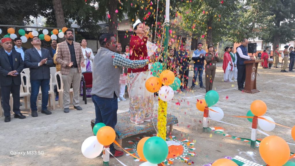 गाजीपुर। राजकीय महिला स्नातकोत्तर महाविद्यालय में गणतंत्र दिवस समारोह पूर्वक मनाया गया। प्राचार्य प्रोफेसर अनिता कुमारी ने तिरंगा ध्वज फहराया तथा संगीत के छात्राओं ने सुमधुर राष्ट्रगान प्रस्तुत किया। महाविद्यालय की एनसीसी कैडेट्स एवं प्रज्ञा रेंजर्स ने मार्च पास्ट करते हुए तिरंगे ध्वज को सलामी दी। इस अवसर पर डॉक्टर निरंजन कुमार यादव ने निदेशक उच्च शिक्षा उत्तर प्रदेश के संदेश का वाचन किया तथा डॉक्टर संगीता मौर्य ने आजादी की 76 साल पर अपने सारगर्भित विचार व्यक्त किया।