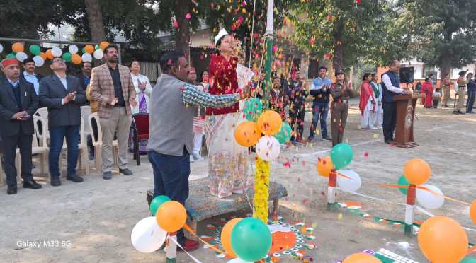 गाजीपुर। राजकीय महिला स्नातकोत्तर महाविद्यालय में गणतंत्र दिवस समारोह पूर्वक मनाया गया। प्राचार्य प्रोफेसर अनिता कुमारी ने तिरंगा ध्वज फहराया तथा संगीत के छात्राओं ने सुमधुर राष्ट्रगान प्रस्तुत किया। महाविद्यालय की एनसीसी कैडेट्स एवं प्रज्ञा रेंजर्स ने मार्च पास्ट करते हुए तिरंगे ध्वज को सलामी दी। इस अवसर पर डॉक्टर निरंजन कुमार यादव ने निदेशक उच्च शिक्षा उत्तर प्रदेश के संदेश का वाचन किया तथा डॉक्टर संगीता मौर्य ने आजादी की 76 साल पर अपने सारगर्भित विचार व्यक्त किया।