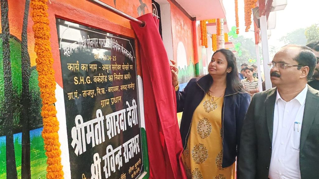 गाजीपुर। जिलाधिकारी आर्यका अखौरी ने मंगलवार को विकास खण्ड बाराचवर के अन्तर्गत ग्राम पंचायत ताजपुर डेहमा मॉडल गॉव का स्थलीय निरीक्षण कर वहां विभिन्न योजना/परियोजना का शुभारंभ किया। जिलाधिकारी ने मॉडल गॉव ताजपुर डेहमा वि0ख0 बाराचवर में पहुचकर वहां बनाये गये स्वम सहायता समूह शेड एवं अमृत सरोवर तालाब, आर0आर0सी सेन्टर का फीता काटकर एवं दीप प्रज्जवलित कर उद्घाटन किया। जिलाधिकारी उद्घाटन समारोह के दौरान अपना सम्बोधन व्यक्त करते हुए कहा कि यहां पर बने अमृत सरोवर जो एक आकर्षण का केंद्र है, जहां पर शाम को लोगो के टहलने व बैठने की व्यवस्था है तथा जल संरक्षण के लिए ऐसे अमृत सरोवर बहुत ही जरूरी हैं।