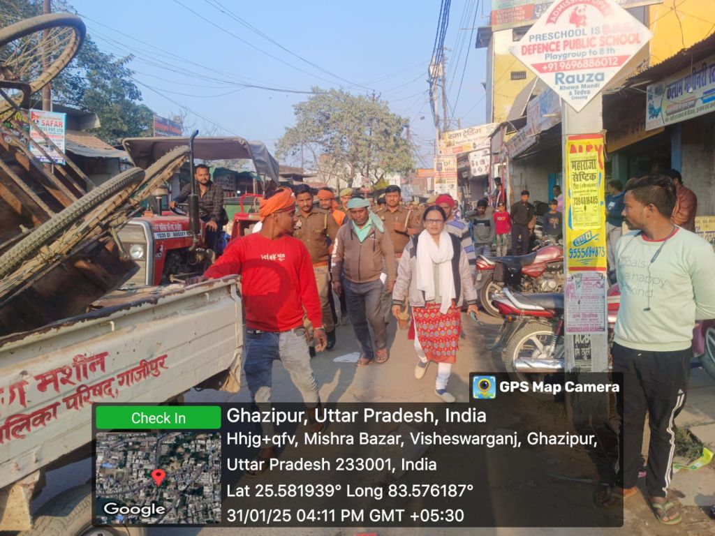 गाजीपुर। नगर पालिका प्रशासन ने शुक्रवार को नगर क्षेत्र में अतिक्रमण हटाओ अभियान चलाया। इस अभियान के दौरान दुकानदारों में अफरा तफरी मची रही। बावजूद इसके दुकानदारों ने अतिक्रमण नहीं हटाया। यह अभियान नगर पालिका ईओ अमिता अरुण के नेतृत्व में चलाया गया। अतिक्रमण अभियान मिश्रबाजार तिराहे से शुरू किया गया जो कोतवाली, विशेश्वरगंज, ओवरब्रिज के नीचे, मालगोदाम रोड और फुल्लनपुर क्रासिंग तक चला। नगर पालिका की टीम के आने की जानकारी मिलते ही दुकानदारों ने आनन फानन में दुकानों के बाहर रखे सामान को समेट कर अंदर कर लिया।