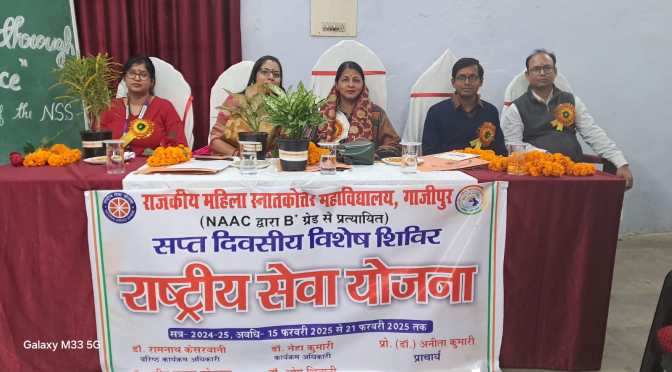 गाजीपुर। शनिवार को राजकीय महिला स्नातकोत्तर महाविद्यालय में राष्ट्रीय सेवा योजना के 46 वां सप्त दिवसीय विशेष शिविर का उद्घाटन हुआ। महाविद्यालय की प्राचार्य प्रो. अनिता कुमारी की अध्यक्षता में आयोजित कार्यक्रम की मुख्य अतिथि भारतीय स्टेट बैंक मुख्य शाखा प्रबंधक श्वेता सुमन रहीं । कार्यक्रम की शुरुआत मां सरस्वती की प्रतिमा पर पुष्पार्चन एवं दीप प्रज्वलन के साथ हुई। प्राचार्य प्रो. अनिता कुमारी ने अतिथियों का स्वागत करते हुए अपने उद्बोधन के द्वारा स्वयंसेवी छात्राओं को पूरे उत्साह एवं मनोयोग से सप्त दिवसीय शिविर में प्रतिभाग करने को प्रेरित किया। वरिष्ठ कार्यक्रम अधिकारी डॉ रामनाथ केसरवानी ने कार्यक्रम की रूपरेखा प्रस्तुत करते हुए बताया की इन सात दिवसों में स्वयंसेवी छात्राओं को नया अनुभव व सीखने का सुअवसर प्राप्त होगा जिसमें वह राष्ट्रीय सेवा योजना के ध्येय वाक्य “मैं नहीं तुम” को चरितार्थ करते हुए अपने गोद लिए क्षेत्र कोयलाघाट, ददरीघाट, मियापुरा तथा नवापुरा में जाकर विभिन्न सामाजिक विषयों जैसे स्वच्छता अभियान, बेटी बचाओ बेटी पढ़ाओ, पर्यावरण संरक्षण आदि मुद्दों पर रैली निकाल कर, डोर टू डोर कैंपेन एवं नुक्कड़ नाटक के माध्यम से लोगों को जागरूक करेंगी । साथ ही छात्राओं के बौद्धिक संवर्धन के लिए संगोष्ठी का आयोजन भी किया जाएगा ।