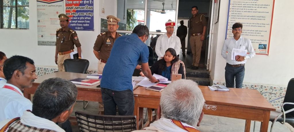 गाजीपुर।माह के चतुर्थ शनिवार को थाना दिवस जिलाधिकारी आर्यका अखौरी की अध्यक्षता में थाना जंगीपुर में सम्पन्न हुआ। जिलाधिकारी ने थाने मे उपस्थित फरियादियों की फरियाद सुनी साथ ही शिकायतो को जल्द से जल्द निस्तारण के लिए प्रशासनिक एवं पुलिस अधिकारियों को निर्देश दिया। थाना जंगीपुर मे 06 फरियादियों ने अपनी-अपनी शिकायतो को लिखित रूप में दिया जिसमें निस्तारण शून्य रहा। जिलाधिकारी ने सभी लेखपाल को निर्देशित किया है अपना-अपना फिल्ड रजिस्टर बनाए तथा आई0जी0आर0एस0 पोर्टल पर जितने भी आवेदन प्राप्त होते है या लम्बित हैं, उन्हे पुलिस विभाग से समन्वय स्थापित कर फिल्ड रजिस्टर पर सभी आवदनों को नोट करके तत्काल निस्तारण किया जाए। उन्होने निर्देशित किया कि जिस गांव की शिकायत आती है तो अधिकारी वहां मौके पर जाकर गांव के संबंधित लेखपाल एवं पुलिस विभाग की टीम के साथ मिलकर निस्तारण करेंगे। इसमें किसी प्रकार की लापरवाही एवं शिथिलता क्षम्य नही होगी। इस मौके पर थाना प्रभारी जंगीपुर, लेखपाल एंव अन्य पुलिस विभाग से संबंधित अधिकारी कर्मचारी उपस्थित रहे।