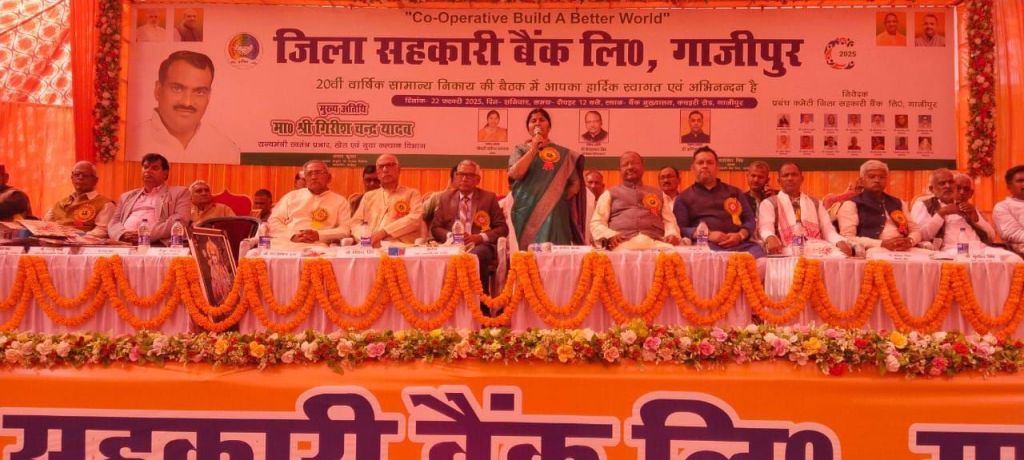 गाजीपुर। जिला सहकारी बैंक लिमिटेड की 20वीं सामान्य निकाय की बैठक 22 फरवरी 2025 को बैंक मुख्यालय पर की गई। जिसमें मुख्य अतिथि राज्यसभा सांसद डा. संगीता बलवंत तथा विशिष्ट अतिथि केदार सिंह पूर्व एमएलसी एवं अभिनव सिन्हा उपस्थित रहे। कार्यक्रम की अध्यक्षता सरोजेश सिंह अध्यक्ष जिला सहकारी बैंक द्वारा की गई। मंच का संचालन सचिन तिवारी इफको द्वारा किया गया। प्रबंध कमेटी के संचालक एवं बैंक के सदस्य समितियां के प्रतिनिधियों द्वारा उक्त बैठक में भाग लिया गया। कैलाश चंद सचिव /मुख्य कार्यपालक अधिकारी द्वारा 31 मार्च 2024 की स्थिति पर बैंक के संतुलन पत्र लाभ हानि खाता अधिकतम दायित्व 31/03/24 के वास्तविक बजट एवं वित्तीय वर्ष 2025 के प्रस्तावित बजट आदि बिन्दुओ को रखा गया उपस्थित सभी सदस्यों द्वारा प्रस्तुत किए गए एजेंडा का स्वीकृत किया गया।